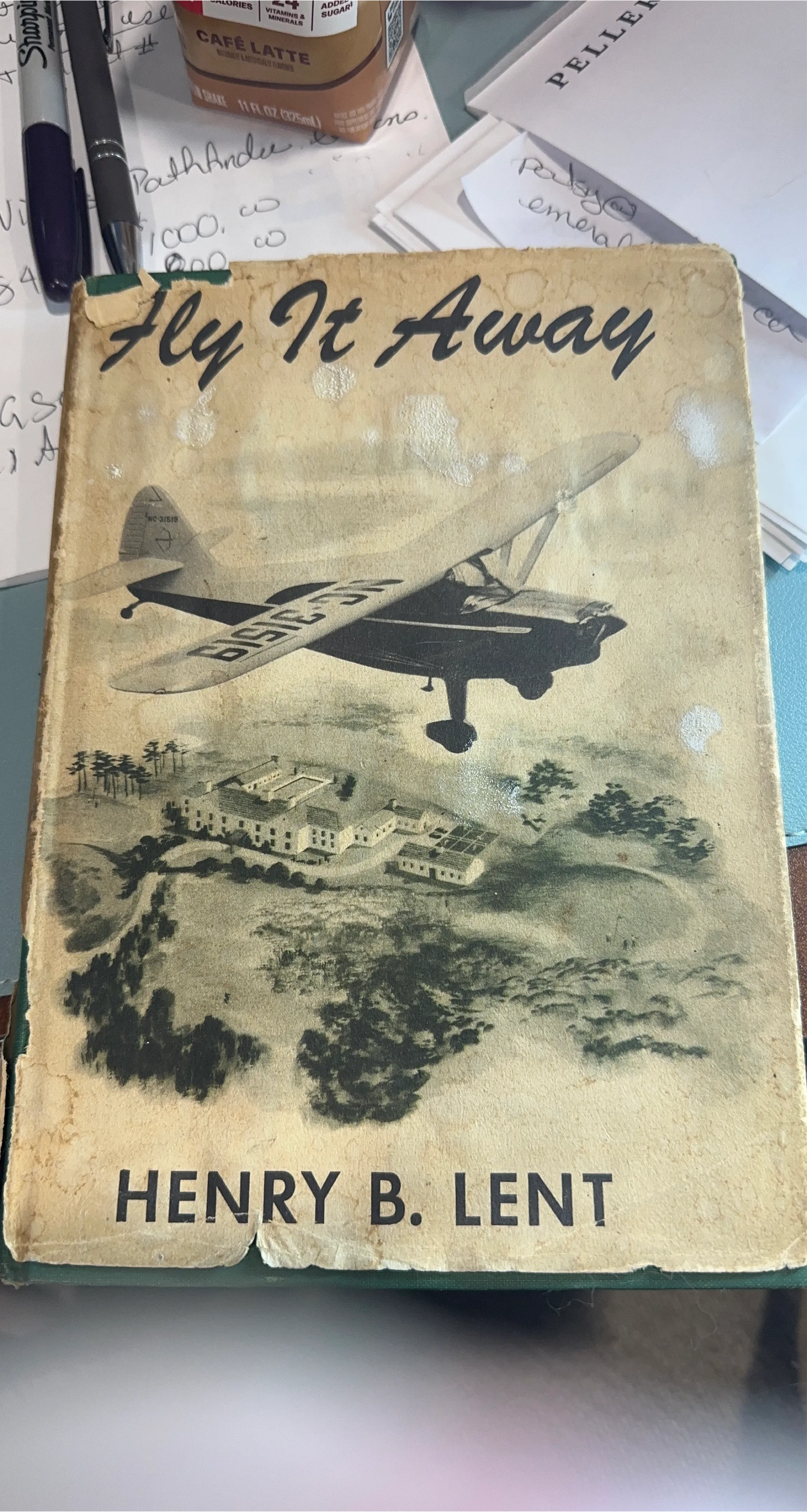 This is the book "Fly It Away" written by Henry B. Lent. It features illustrations of airplanes and buildings. A great read for aviation enthusiasts!