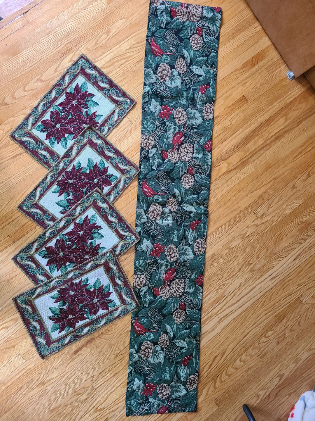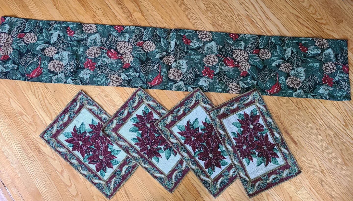 Spruce up your holiday decor with this festive table runner and placemat set! New, table runner approx 6ft,