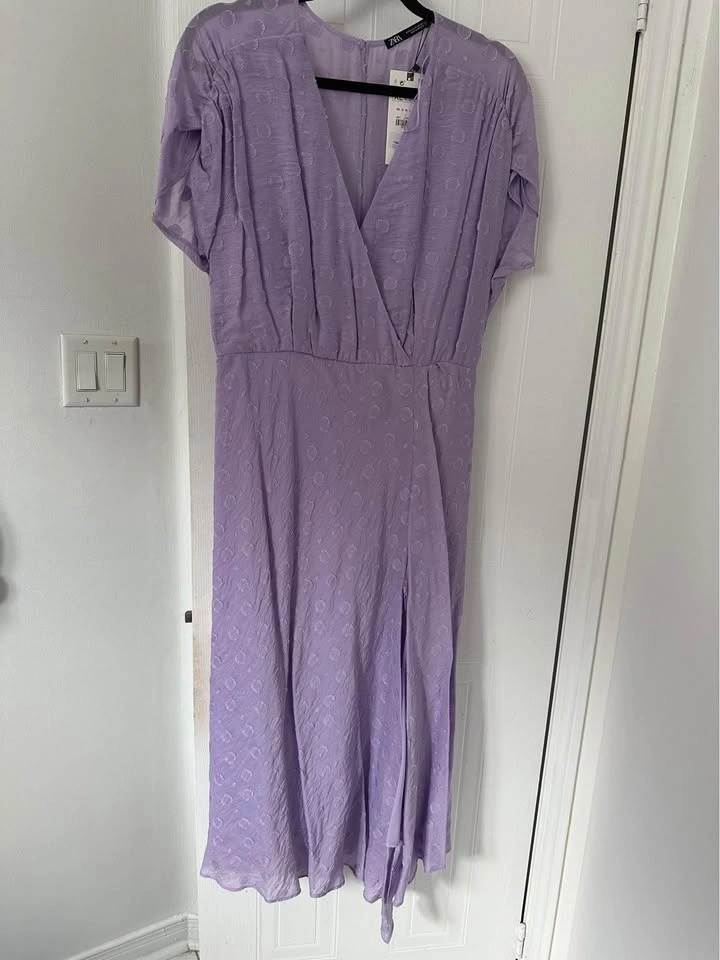 Buy & SellZara Purple DressZara Purple Dress$50Purple/ Lilac/Lavender Midi Dress with polka dot details. Opening at back and half zipper. Size XL. New with tag.WHERE TO MEETCheck LocationView MapSELLERAnnetteWhitby Shores100 reviews0 chats·0 favorites·20 viewsSEND CHAT TO SELLERHi Annette! I’m interested in your listing.Hi Annette! I’m interested in your listing.Get the Karrot app to chatSign In to chat