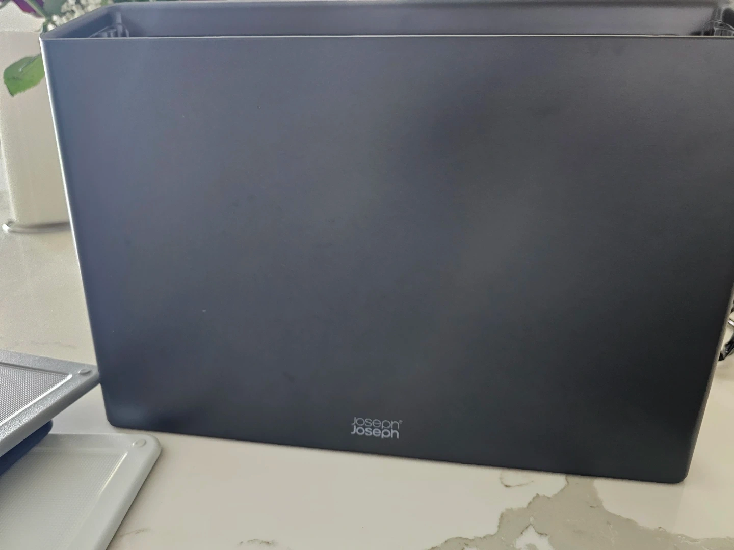 Joseph Joseph cutting board set with storage. Includes multiple boards in various colours. Boards nest together for compact storage in the handy grey case. Non-slip surfaces and durable plastic construction. Only used a couple of times.