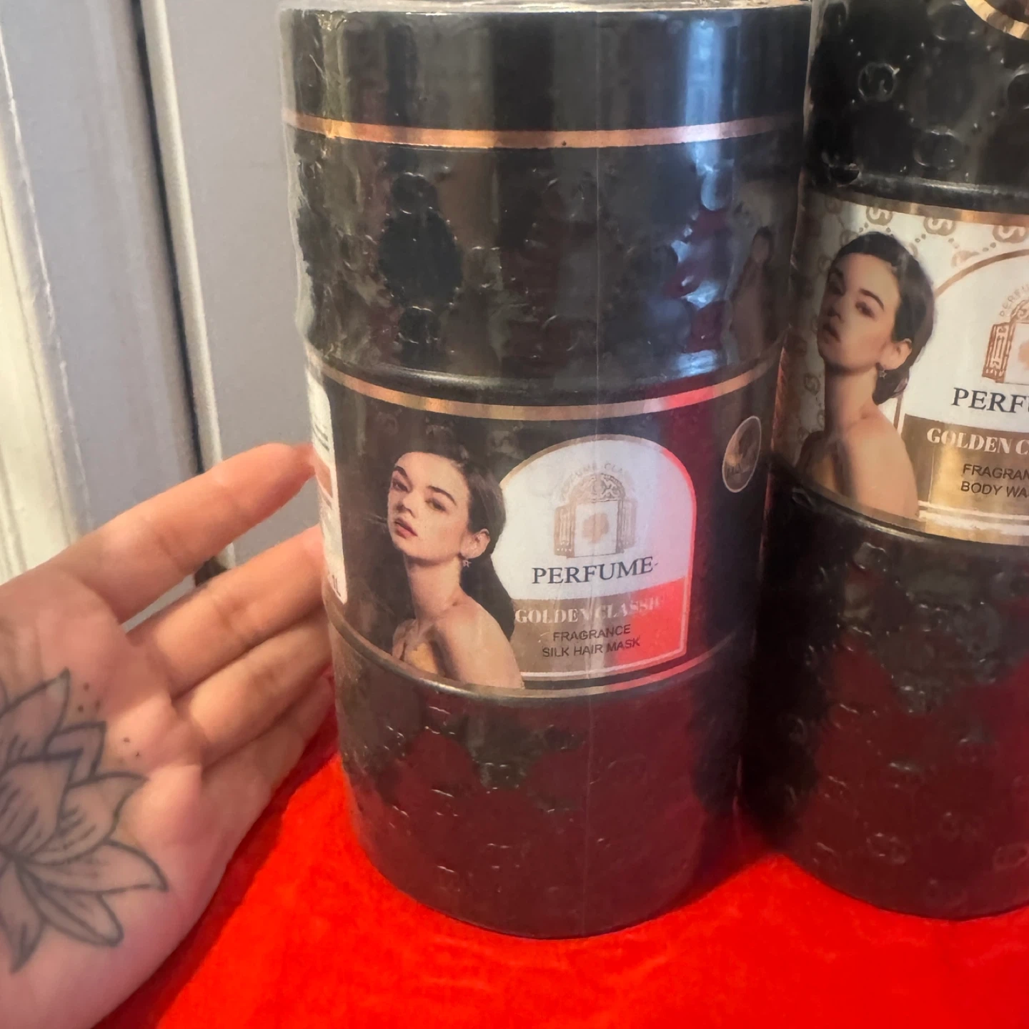 This is a 1-liter Luxelux smoothing hair mask. It nourishes and smooths hair, leaving it soft and shiny. Formulated with Cetearyl Alcohol, Glycerin, and Dimethicone. For use on hair. The black bottle is a body wash and a smaller one. It’s a hair mask. The pink bottle is shampoo and the smaller bottle is hair mask or $10 each.