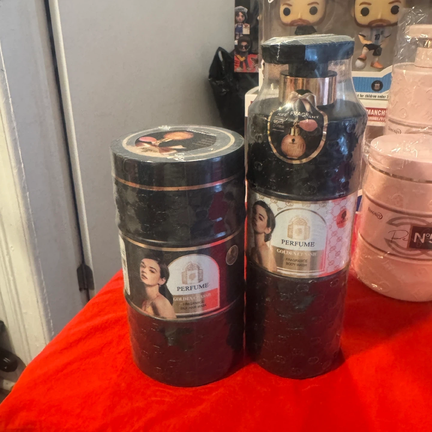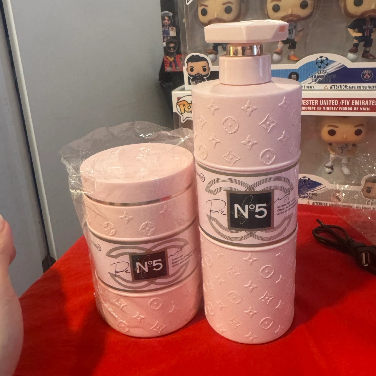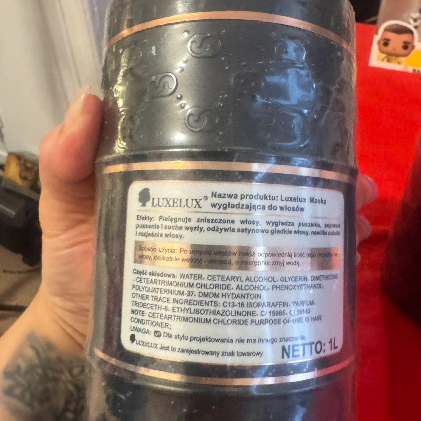 This is a 1-liter Luxelux smoothing hair mask. It nourishes and smooths hair, leaving it soft and shiny. Formulated with Cetearyl Alcohol, Glycerin, and Dimethicone. For use on hair. The black bottle is a body wash and a smaller one. It’s a hair mask. The pink bottle is shampoo and the smaller bottle is hair mask or $10 each.
