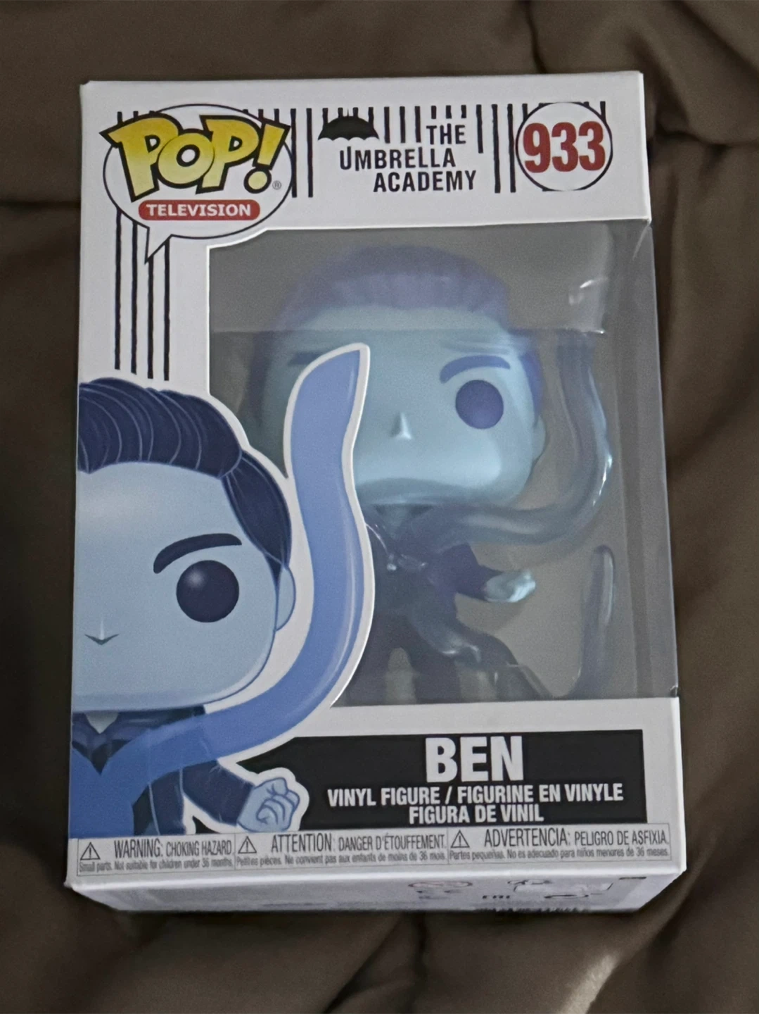 This is a Funko Pop! vinyl figure of Ben from The Umbrella Academy, number 933. It comes in its original packaging. This collectible figure is great for fans of the show.