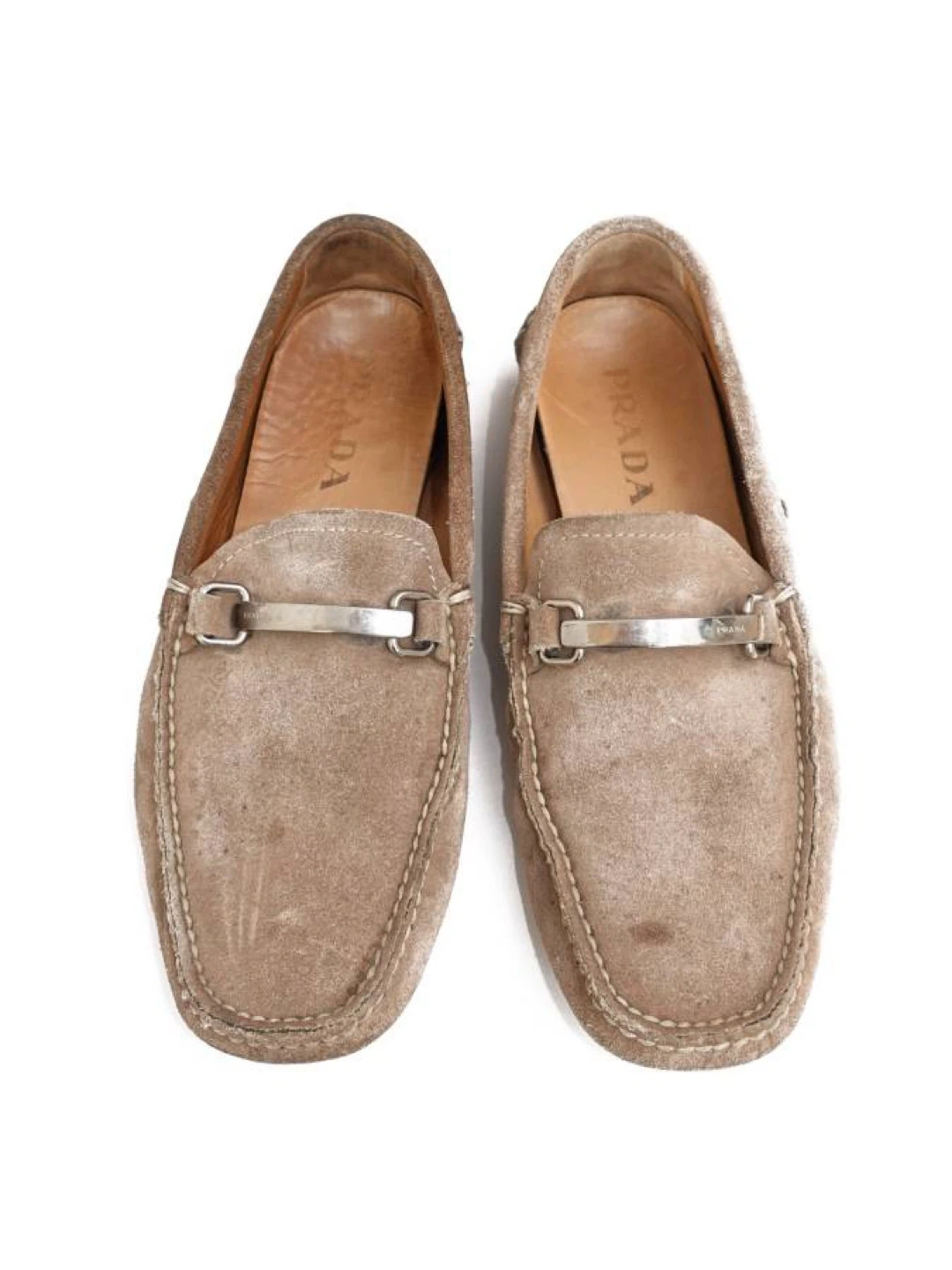 Show allPrada Beige Suede Loafers with Silver Buckle