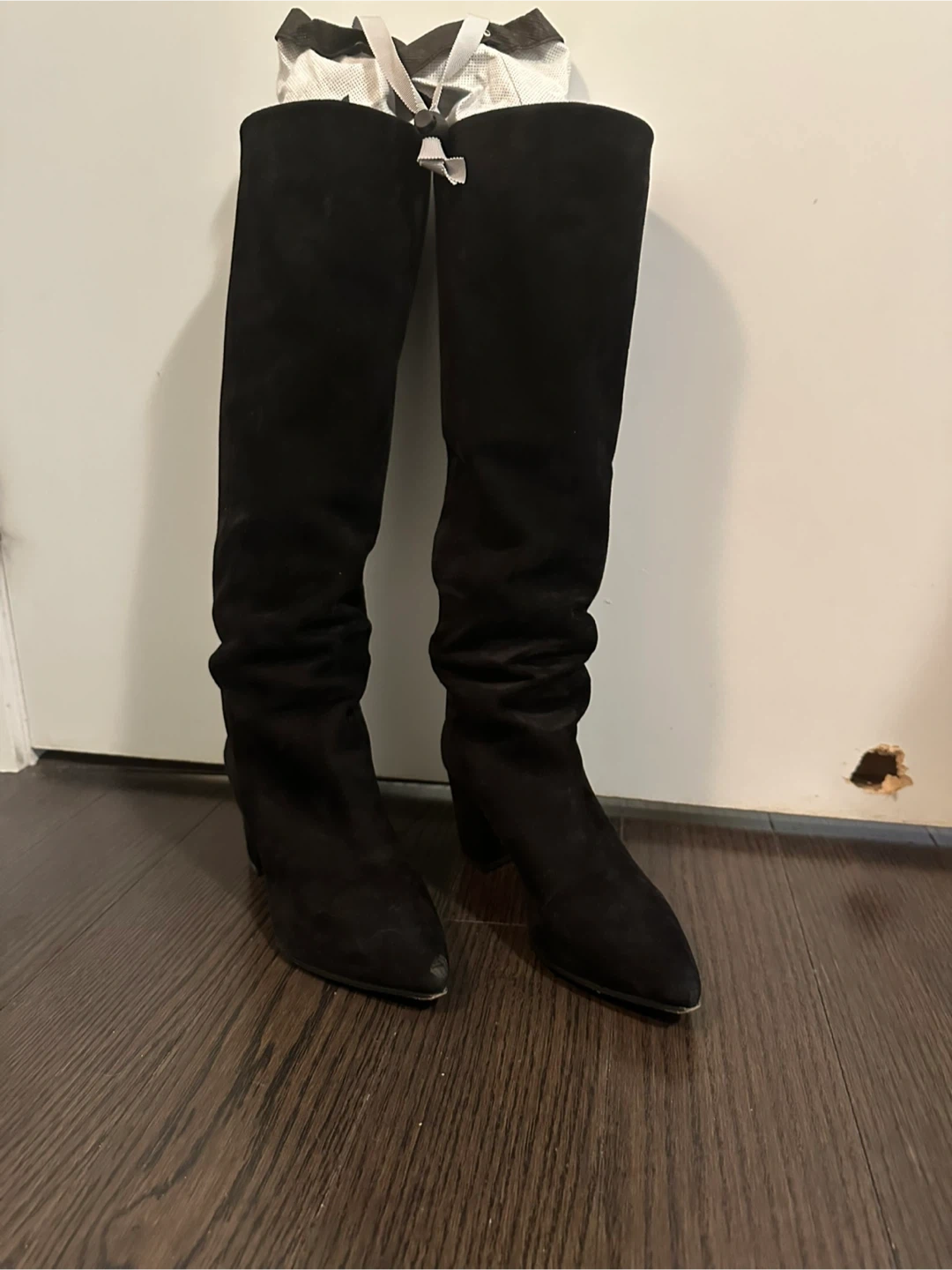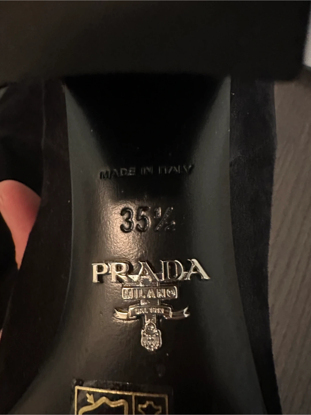 88Prada black suede boots. size 35.5. The inside is leather. Heel 6cm Used a few times. Mostly it’s in closet with bag.