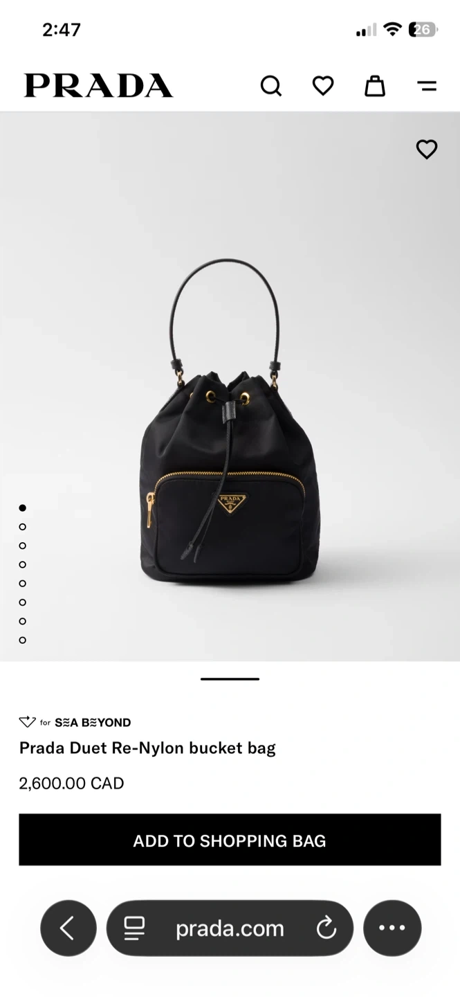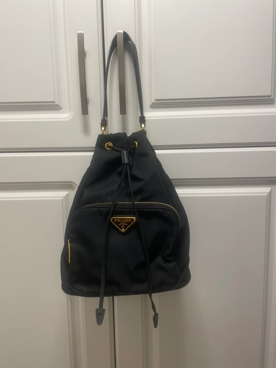 88Selling a like new authentic Prada Duet Re-Nylon bucket bag in black. It's in new shape and ready for a new home! This stylish bag originally retailed for $2,600 CAD. Perfect for everyday use or a night out and is still in stores. Will provide receipt and authenticity information from prada.