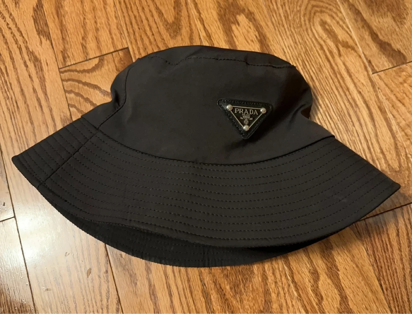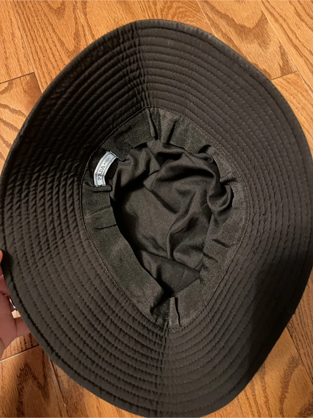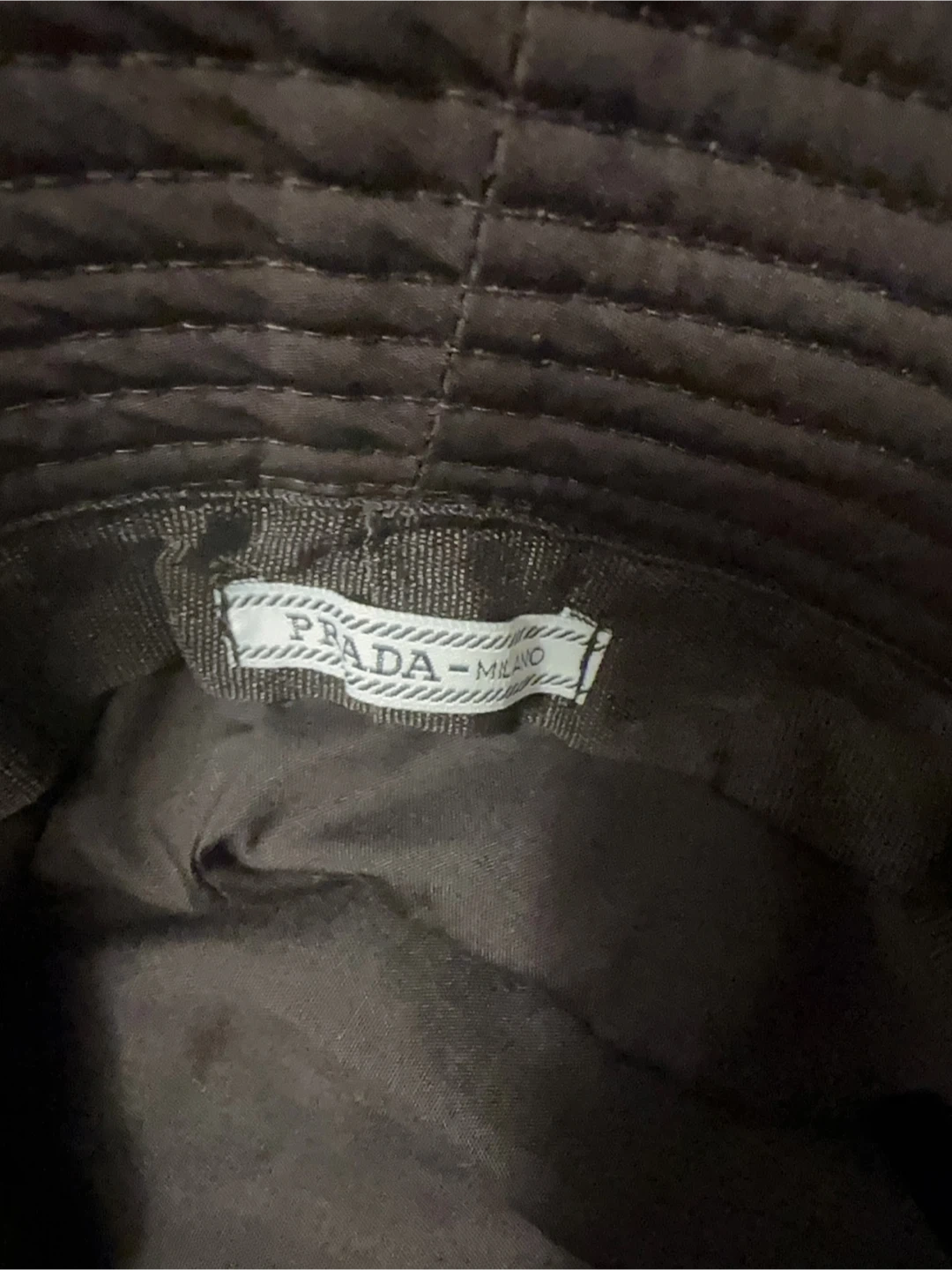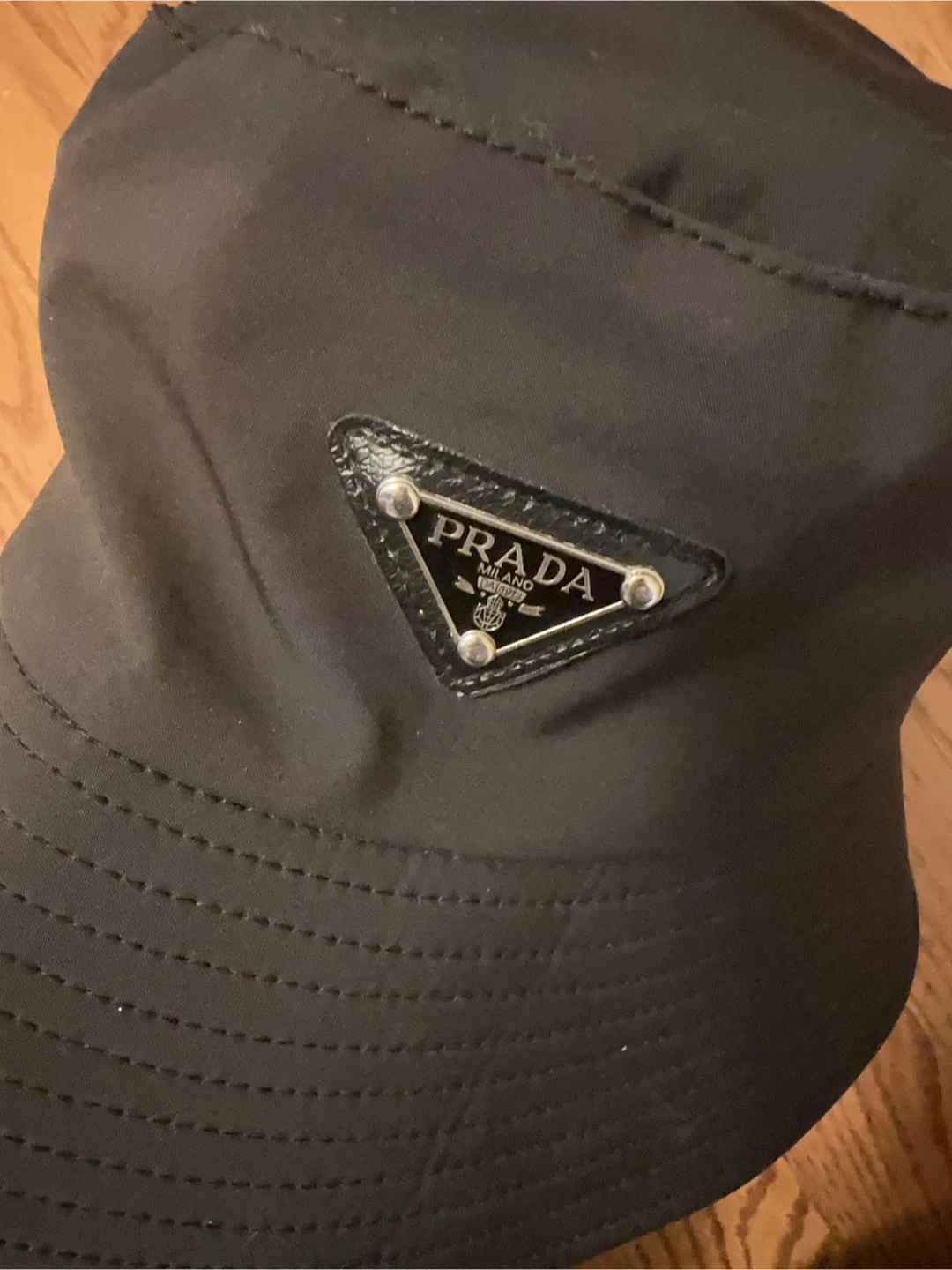 10Selling a stylish Prada Milano bucket hat in black. It's in great condition and ready for a new owner! Perfect for adding a touch of designer flair to your wardrobe