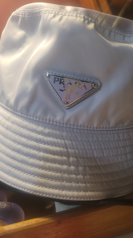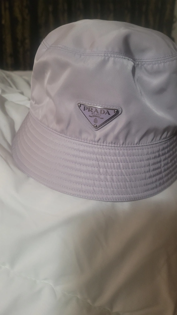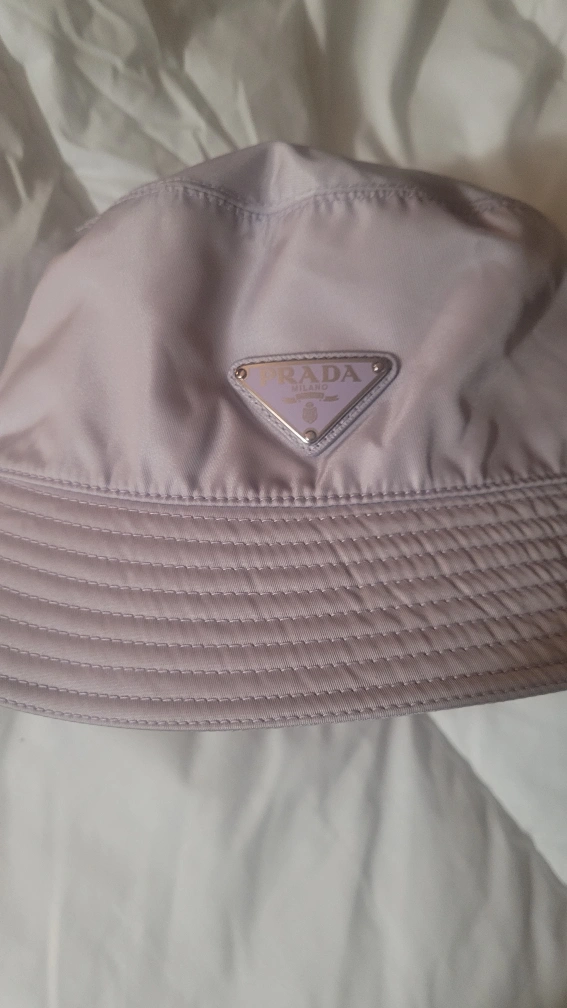Authentic!! Authentic !! Prada Re-Nylon bucket hat! (57cm) almost new , light gray color It's a beautiful lilac colour and in great condition. The hat is made in Italy and features the iconic Prada logo. $330 p/U Lougheed station