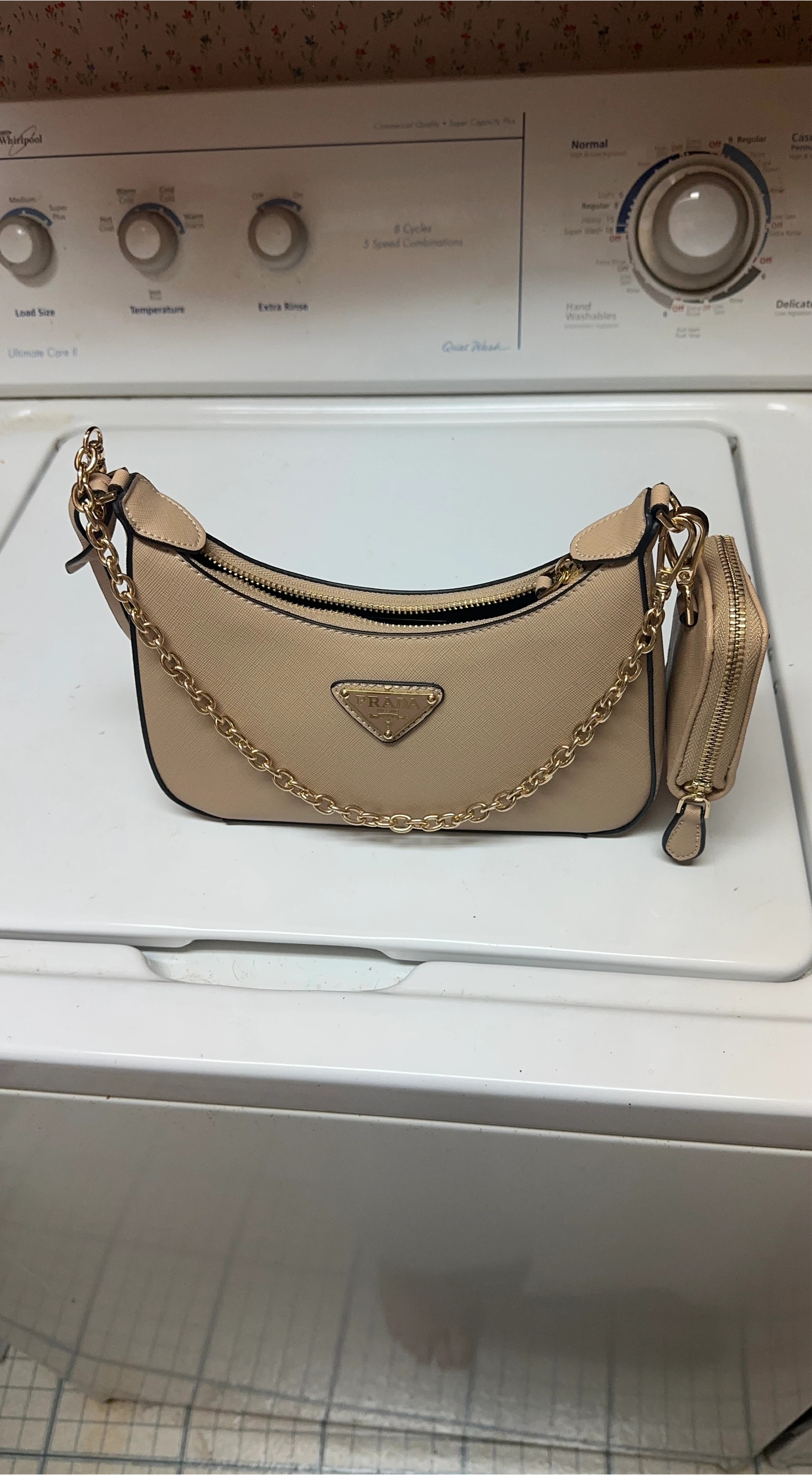 60Selling a cute Prada re-edition beige mini shoulder bag in! It comes with a stylish chain and a small attached coin purse. Perfect for adding a touch of elegance to any outfit! This was a gift from an ex so no need to pretend I want it anymore. I only use black purses so I had no need for this one but I’m sure someone will want it. It’s still got that brand new stiff feeling to it!