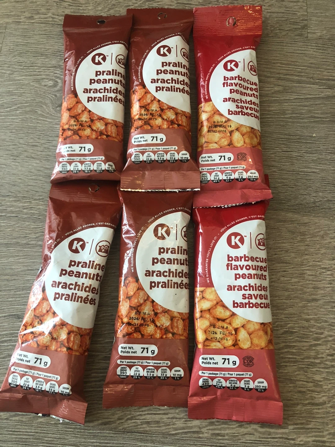 Got some peanuts for sale! There are both Praline and Barbecue flavours. Each package is 71g. Perfect for a quick snack! $3 for 6
