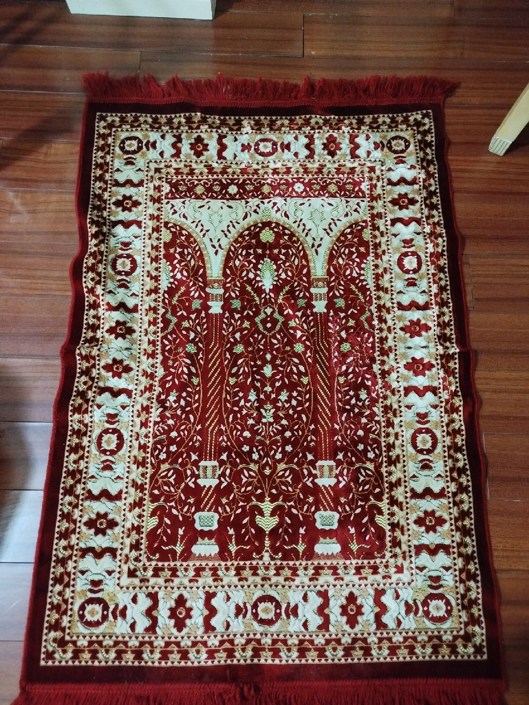 10Selling a prayer rug with a red and cream design. It's in good condition and perfect for daily prayers