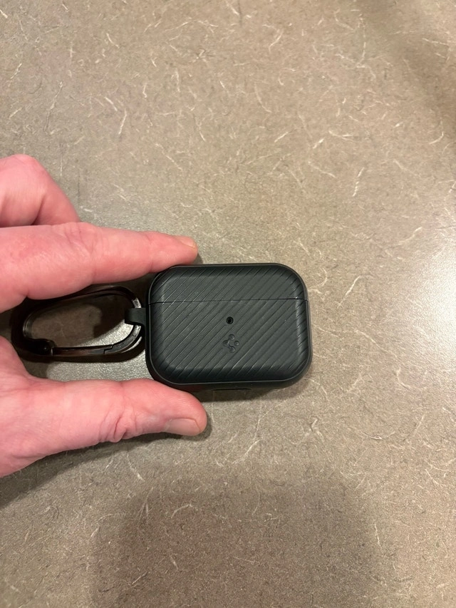 BOXING WEEK SALE - Everything Must Go! Selling a Spigen Mag Armour AirPods Pro 2 Case with carabiner. This case has been used but is in great condition. View photos. It is MagSafe compatible. Asking $5 Firm. PICK UP ONLY (Dundas/Dovercourt area). CASH ONLY. NO TRADES. Check out my other listings and seller rating and buy with confidence.