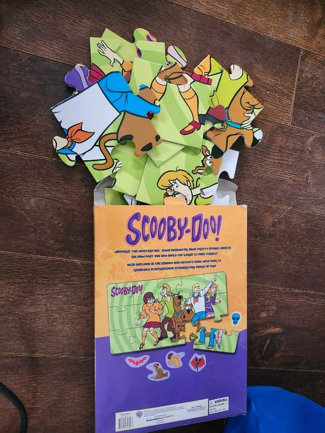 Get ready for mystery-solving fun with this Scooby-Doo activity book and giant floor puzzle! It includes a Scooby-Doo activity book with removable stickers for hours of entertainment. It has been opened, but is in good condition. If the ad is still up, the mystery-solving adventure is still available!