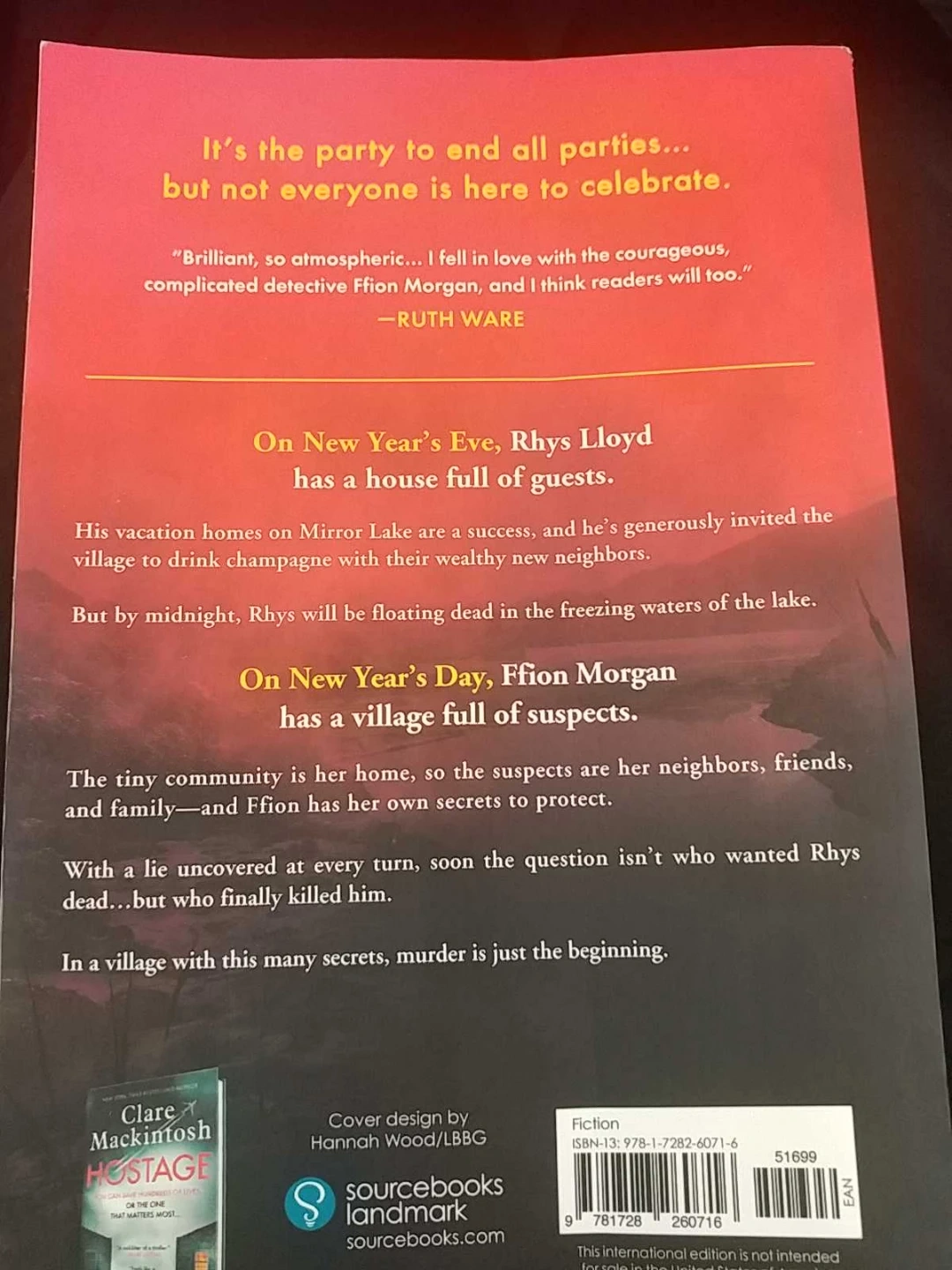 A thrilling mystery novel by New York Times Bestselling Author Clare Mackintosh. On New Year's Eve, Rhys Lloyd is found dead at his holiday home, and the guests become suspects. Ffion Morgan must uncover the secrets of this tight-knit community to find the killer. A suspenseful read where murder is just the beginning!