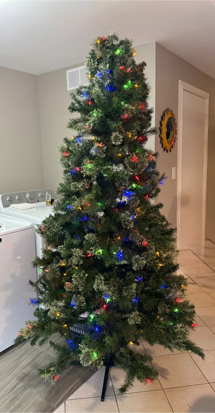 12Selling a pre-lit artificial Christmas tree! It has colour-changing LED lights and natural branch tips. It's easy to disassemble for convenient storage and includes the tree stand.