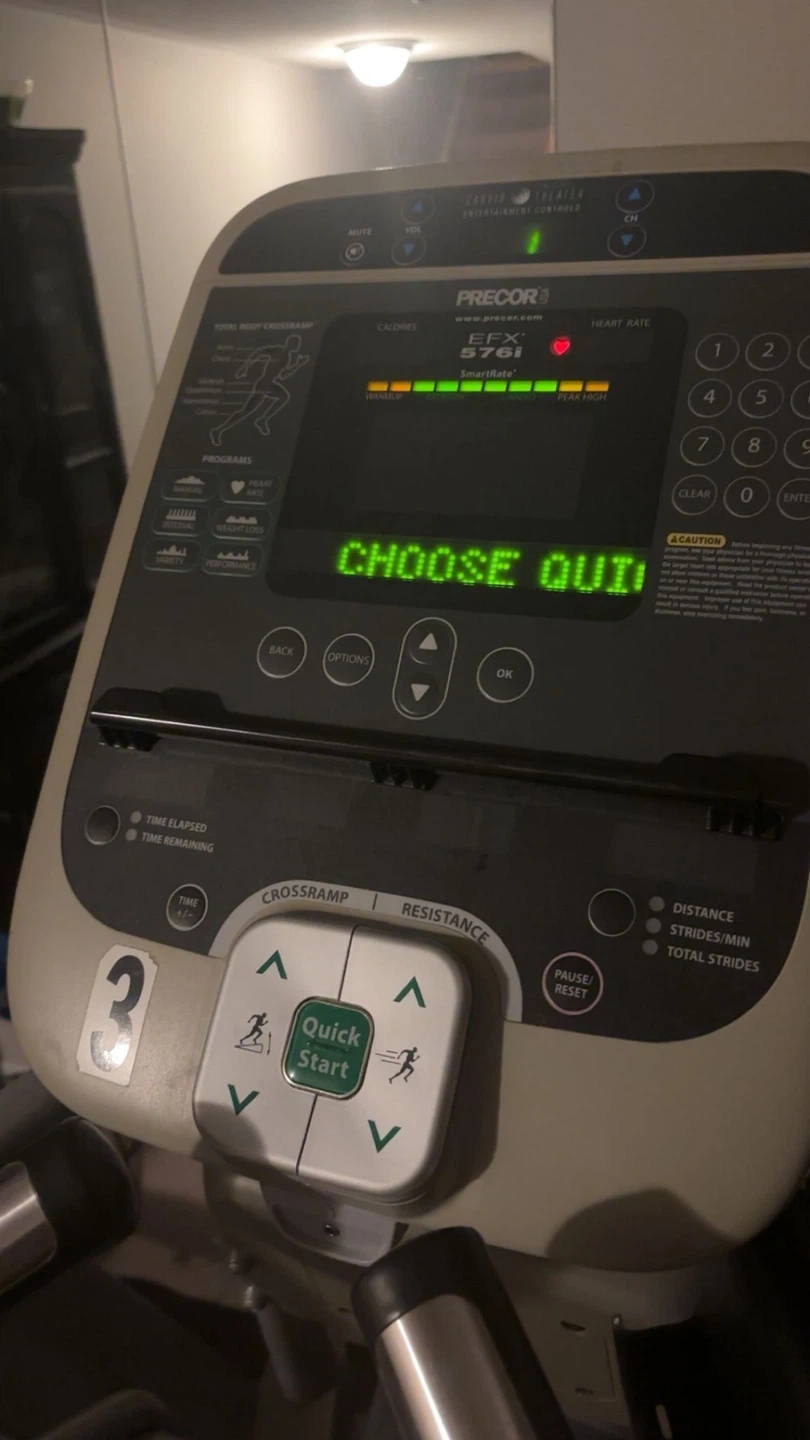 74Selling a Precor EFX 576i elliptical fitness crosstrainer. It's in good working condition and ready for a new home gym! It features SmartRate calorie monitoring and a variety of programs to choose from for a great workout. Must disassemble and pick up. Treadmill- $600 Elliptical Machine- $600 Both- $1200
