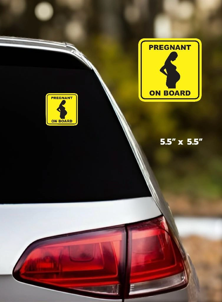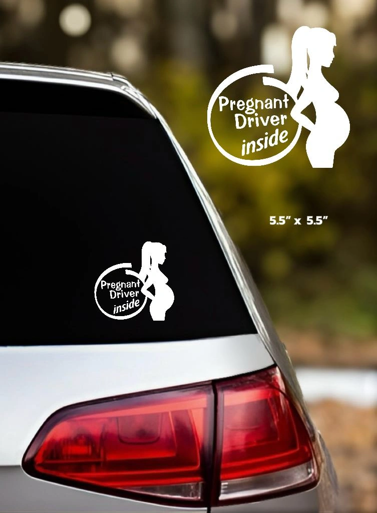 Car decal indicating a pregnant driver inside Size: 5.5" x 5.5"