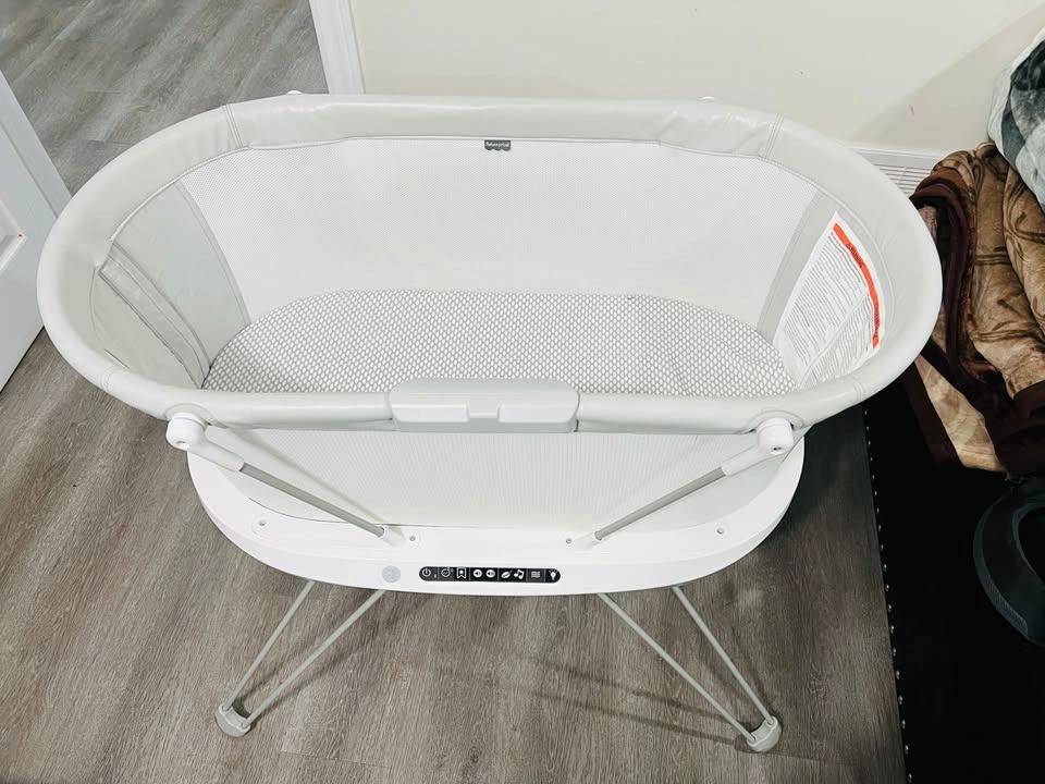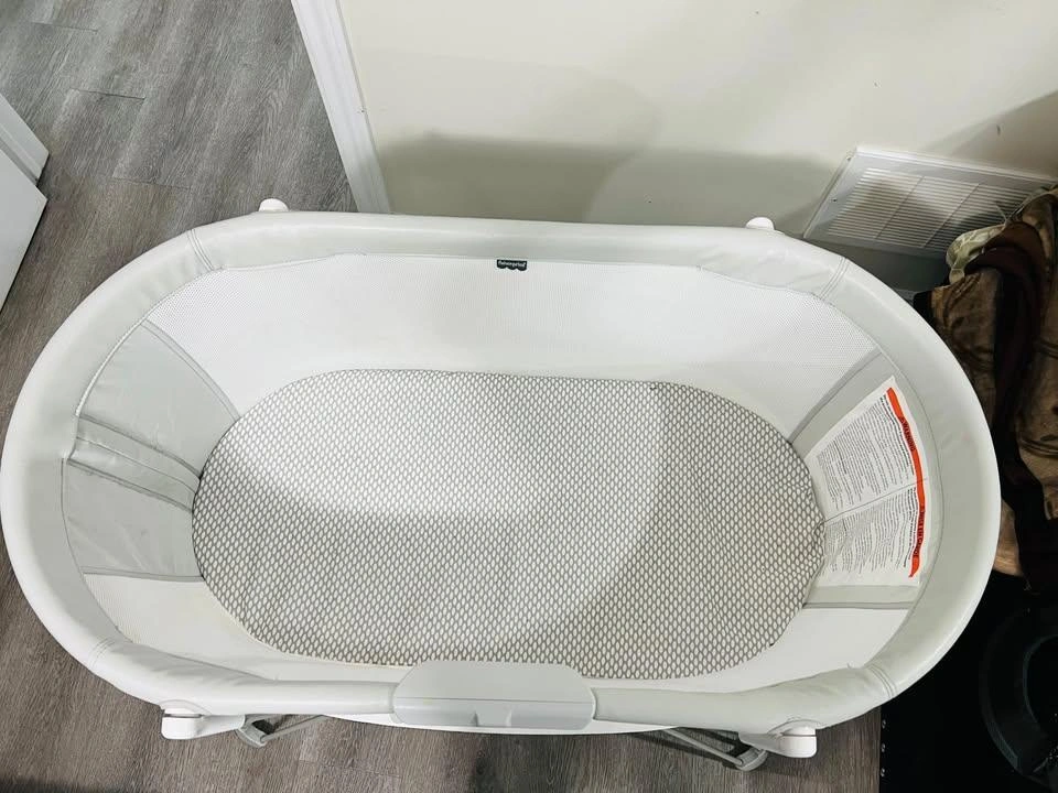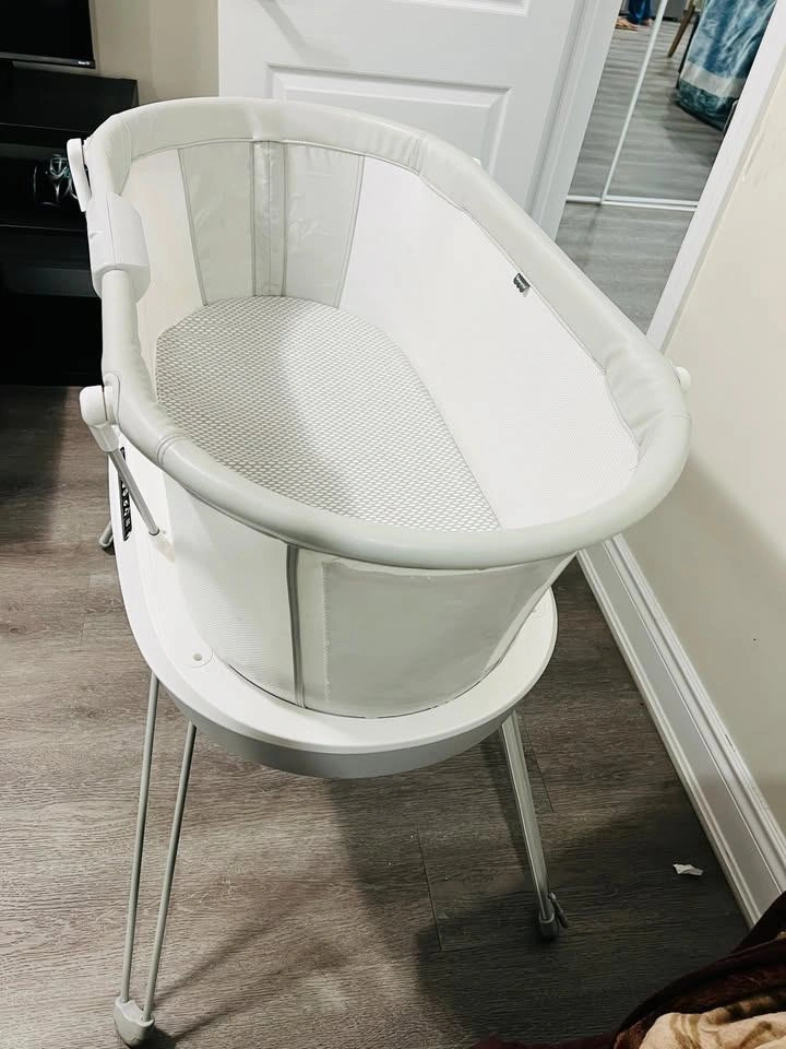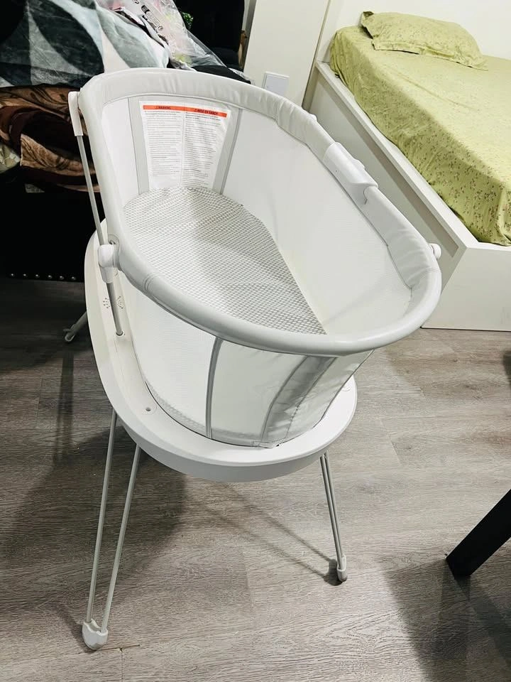 Condition Used - like new Description: Gently used premium electric baby bassinet in excellent condition. Designed for comfort and safety, this bassinet features: Soothing Vibration Function to help your baby sleep soundly Breathable Mesh Sides for optimal airflow and visibility Sturdy Metal Frame with stable legs for added safety Removable Mattress Pad with washable cover for easy cleaning USB Power Cable Included for convenient operation Perfect for newborns up to 6 months or 20 lbs. Neutral white design complements any nursery décor. 📍 Condition: Excellent – clean, no damage, ready to use ⚡ Power: USB (cable included) 📦 Pickup Location: Malton Mob: +1 437-981-2924 Give your baby a safe and soothing sleeping space at a fraction of the retail price.