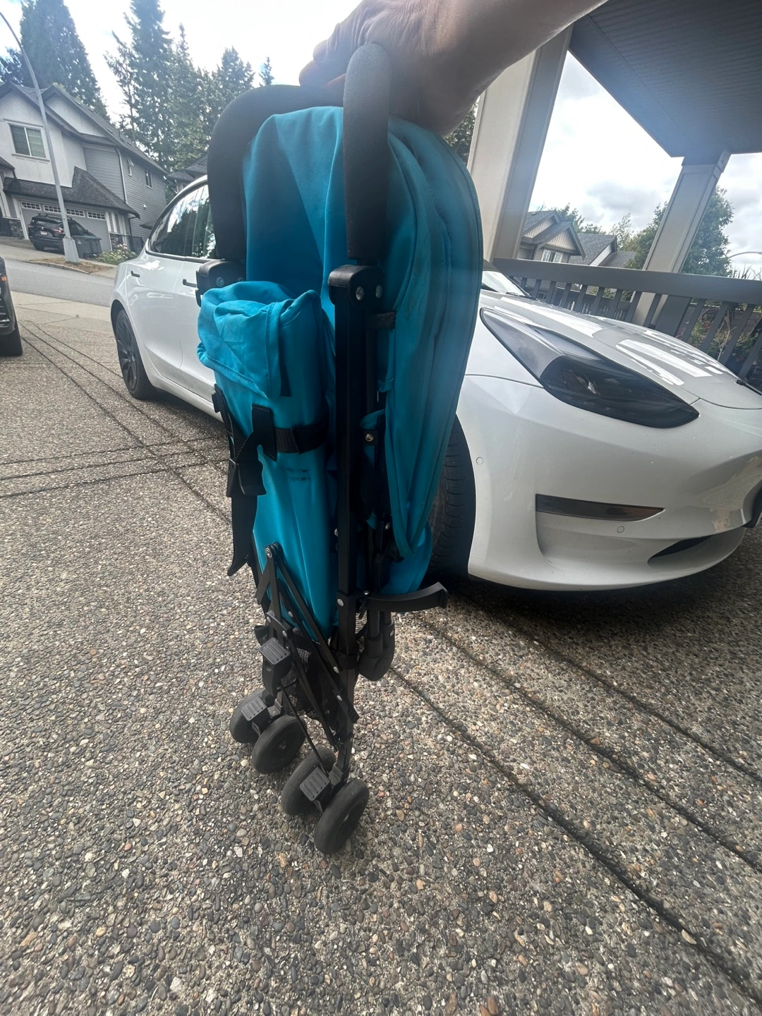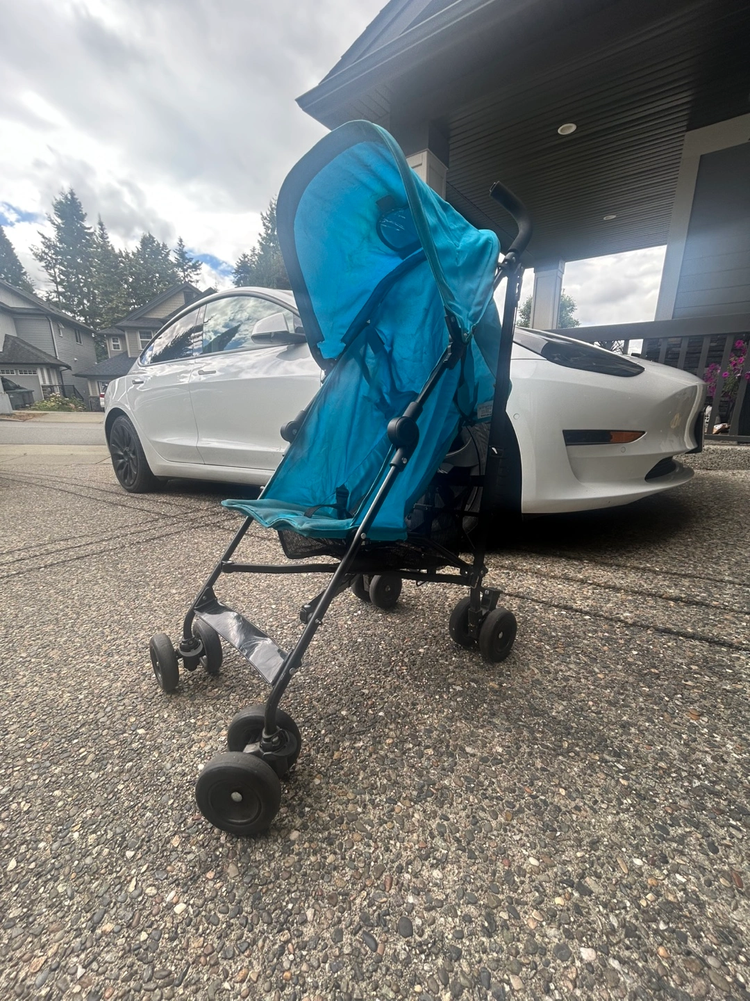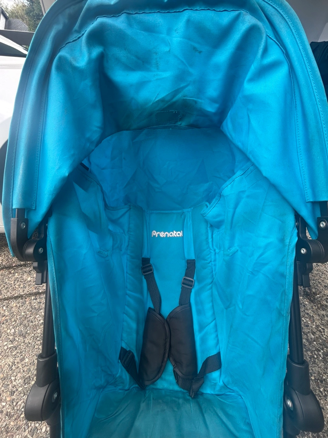 149Selling a used Prenatal stroller in blue. It shows signs of wear, but it's still functional and ready for use. Perfect for quick trips around town or travel
