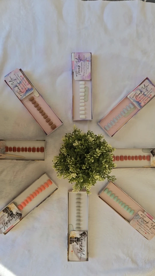 Selling a set of 24 press-on nails with various designs! They come in a box and are perfect for adding a touch of elegance to your look.