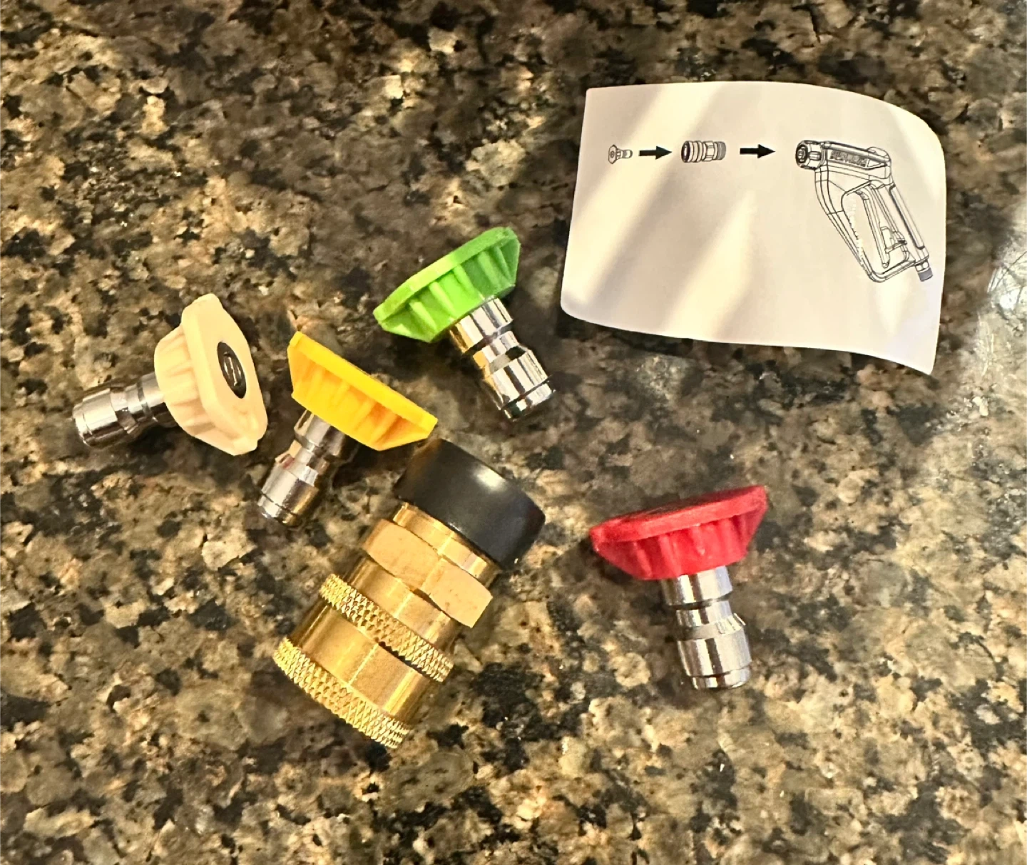 106Selling a set of pressure washer nozzle tips. Includes multiple spray patterns for different cleaning tasks. Great for car washing, patio cleaning, and more! Comes with the instruction sheet.