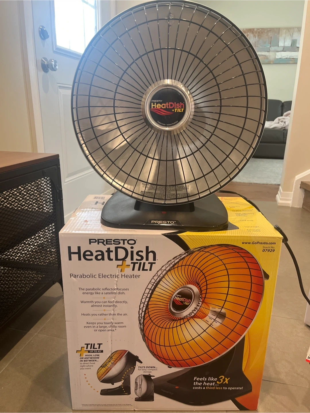 42Selling a Presto HeatDish + TILT parabolic electric heater. It focuses energy like a satellite dish, providing warmth you can feel almost instantly. Box included I have two.
