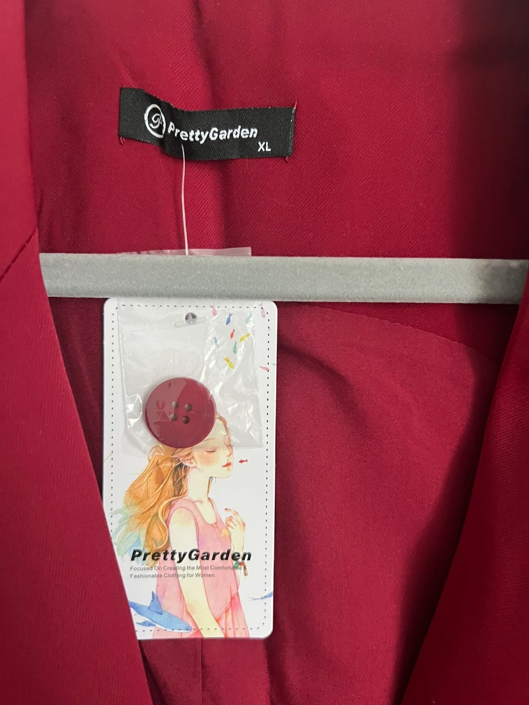 18Selling a PrettyGarden two-piece outfit in a beautiful red colour. It includes a sleeveless blazer and matching pants. The size is XL. Perfect for a stylish and comfortable look!
