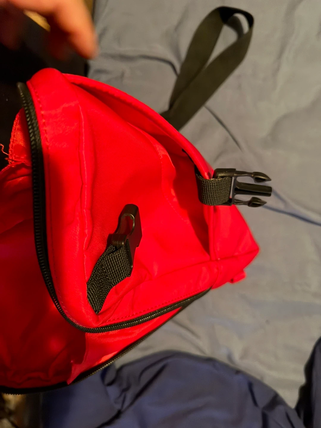 This red Guess sling bag is a great accessory. It's made of durable material and has an adjustable strap with a buckle closure. This bag is perfect for carrying your essentials on the go!