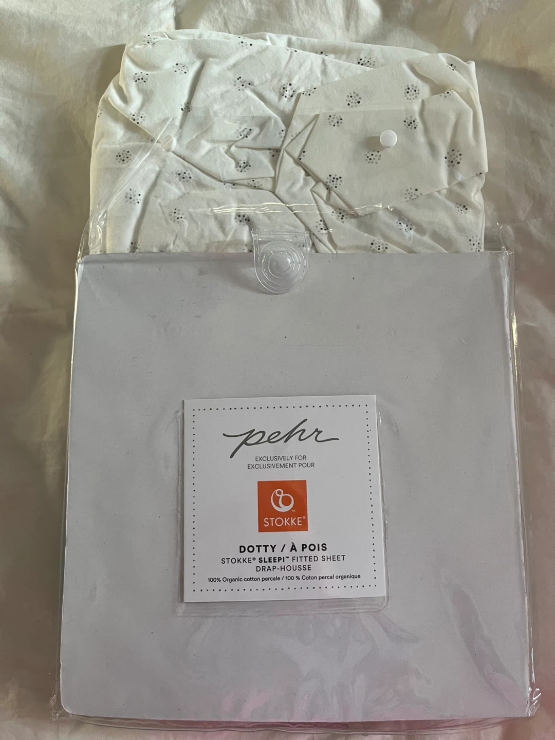 Selling a brand new Stokke Sleepi Fitted Sheet in the Dotty/À Pois design. It's made of 100% organic cotton percale. This fitted sheet is designed for the Stokke Sleepi crib and is machine washable. Perfect for creating a sweet and comfortable sleep environment for your little one!