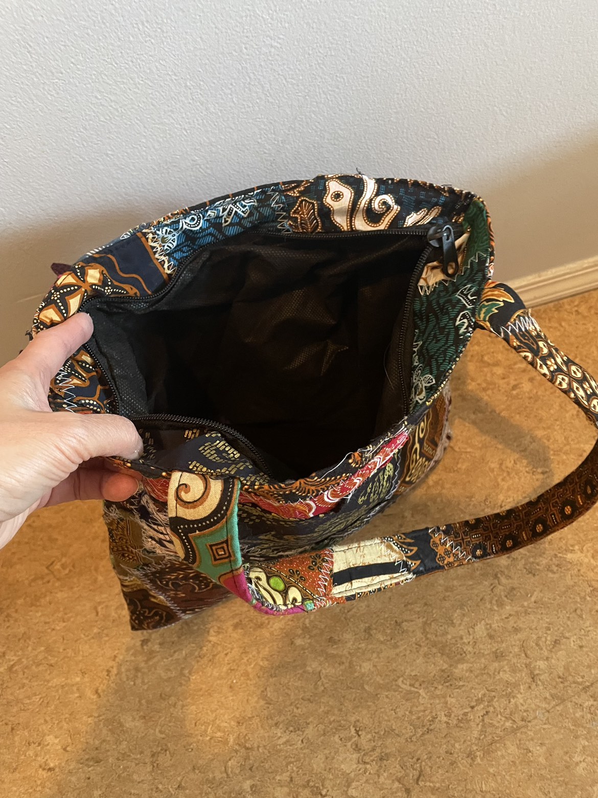 Price drop! Beautiful jewel tone hand crafted bag. Completely unique, one of a kind item that you will not find in any store. Made by a crafter, from a festival. I bought 2 and selling one.