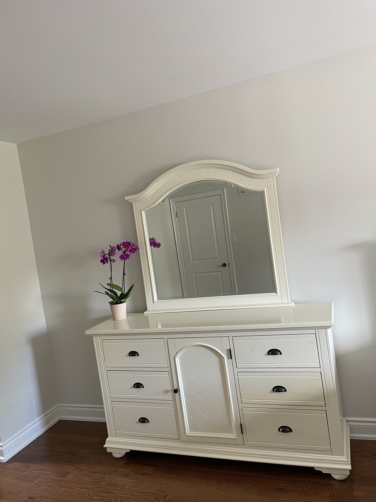 471Moving Sale I am selling my 4 pieces king bed set that includes: King bed frame Large dresser Nightstand Large mirror King Sealy mattress Used Like new Brand: The Brick