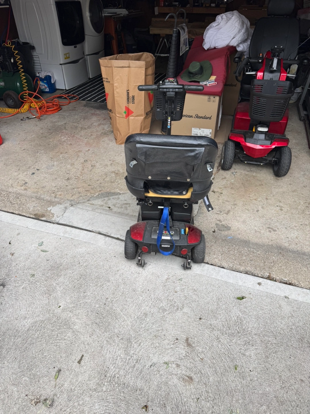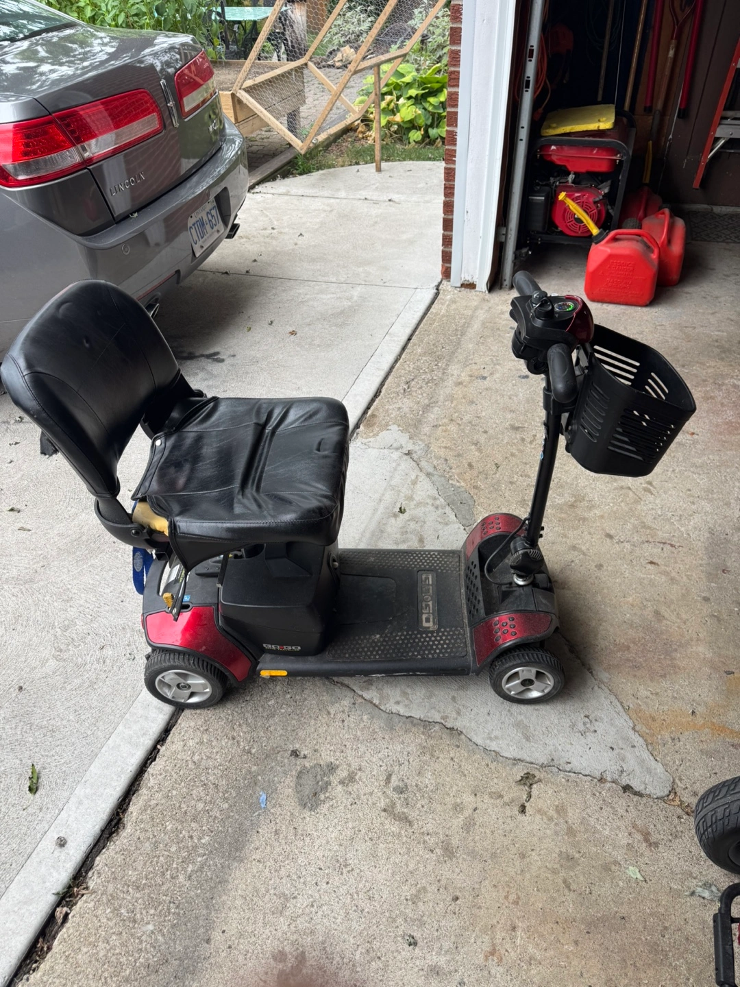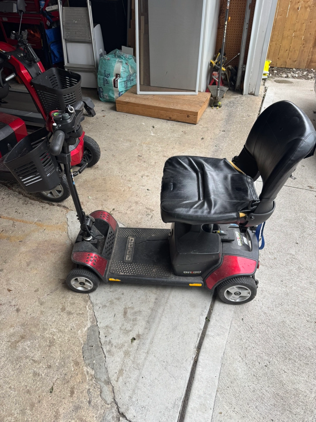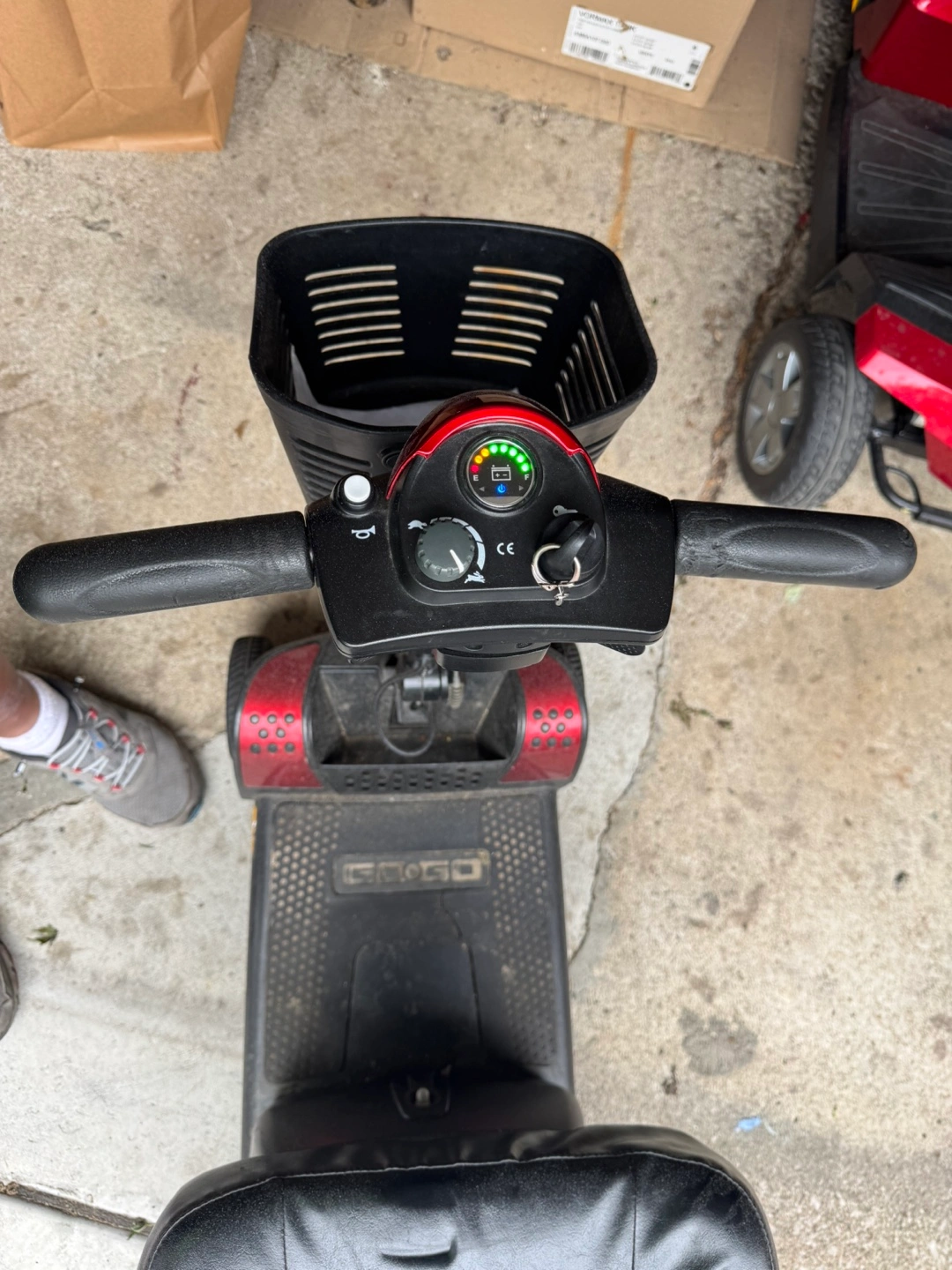 Selling a Pride Go-Go mobility scooter! It's in good condition and ready to help you get around. It features a convenient front basket and comfortable seat. Perfect for indoor and outdoor use!