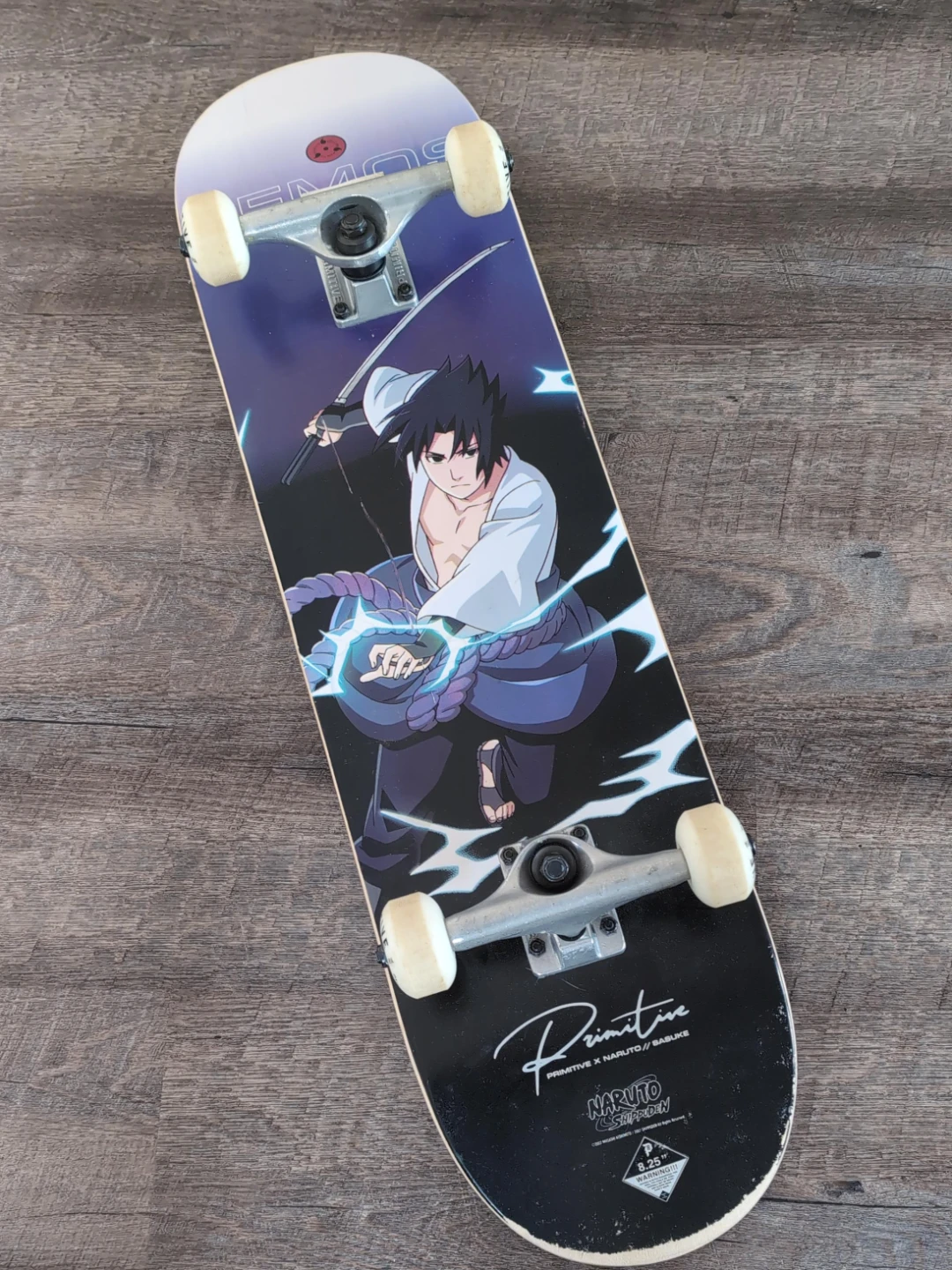 18Selling a Primitive x Naruto skateboard featuring Sasuke. It's in great condition and ready to ride! The deck has a cool graphic, and the wheels are smooth. Perfect for any Naruto fan or skater