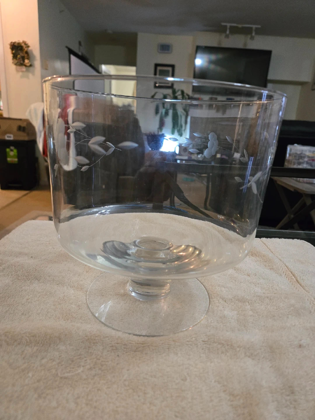 10from Princess House Crystal. Now collectable. I think I used it twice in 30 years. 9.5" x 9.5"