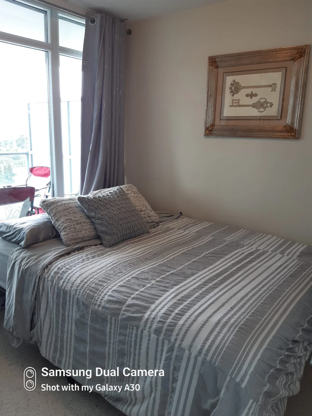 60Private room with private bathroom for rent in an apartment. Available November 1st Looking for a responsible young lady who can live with a family. Resort Amenities - Controlled access and security system - 24-hour accessibility - Gym (no additional cost) Details - No pets, no smoking. - Shared areas: kitchen, living room, and laundry room. - Water and electricity included - Internet included - The apartment is located in South Burnaby. Bus line is located on the corner of the building. 7 minutes from the Edmonds Expo Skytrain Station, 10 minutes from Metrotown. Close to pharmacies, restaurants, a supermarket, a community center, and a library. If you are interested, please contact me. Viewings can be arranged.