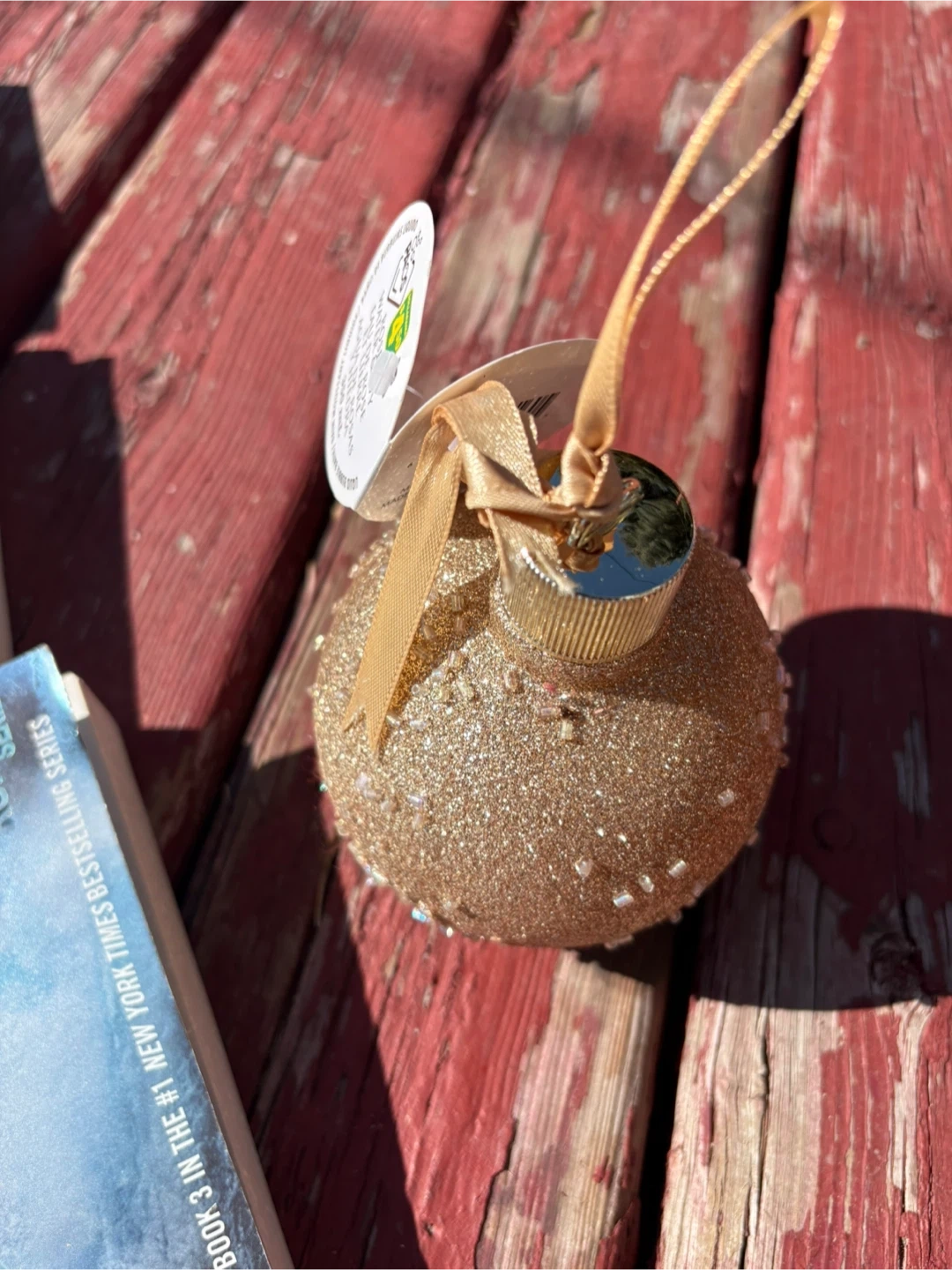 This is a festive rose water & ivy scented bath ornament. It has a glittery exterior with beaded accents. Great for adding a touch of sparkle to your holiday decor!