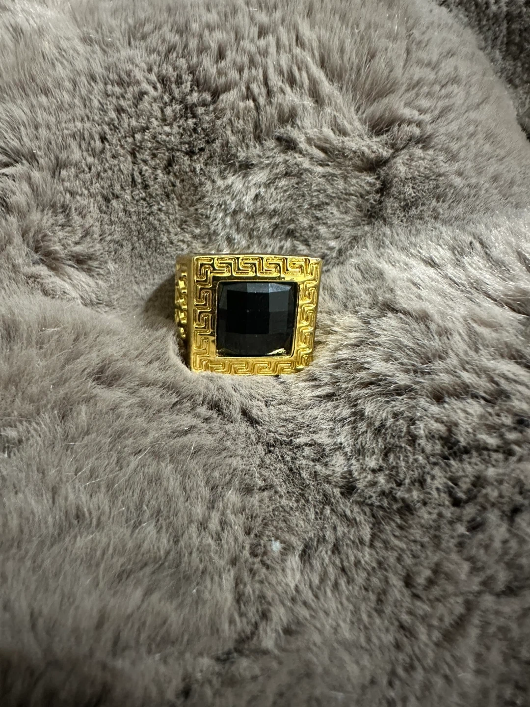 Gold-toned ring with black square stone