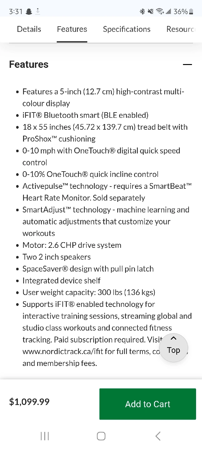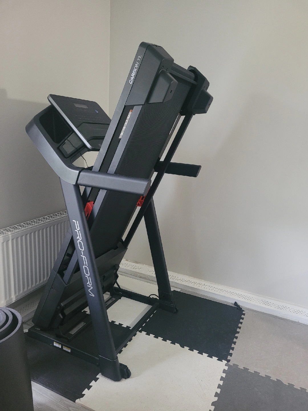 65Selling a Pro-Form Carbon T7 treadmill in excellent condition! It features a 5-inch high-contrast multi-colour display and iFit Bluetooth smart (BLE) enabled connectivity. The tread belt measures 18 x 55 inches with ProShox cushioning, and it has a motor with a 2.6 CHP drive system. It also includes two 2-inch speakers and a SpaceSaver design with a pull-pin latch. Originally bought for $1,099.99. Can arrange delivery if needed. Only had for a few months and used a few times. Can come check it out first before disassembling.