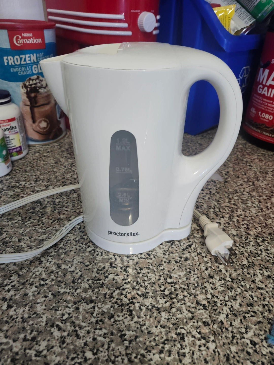 White electric wireless kettle. Cord included. Measurements marked on side: 1.0L max, 0.75L, 0.5L min. Brand-new. Only used maybe 3 times. Pick-up only near Main and Danforth.