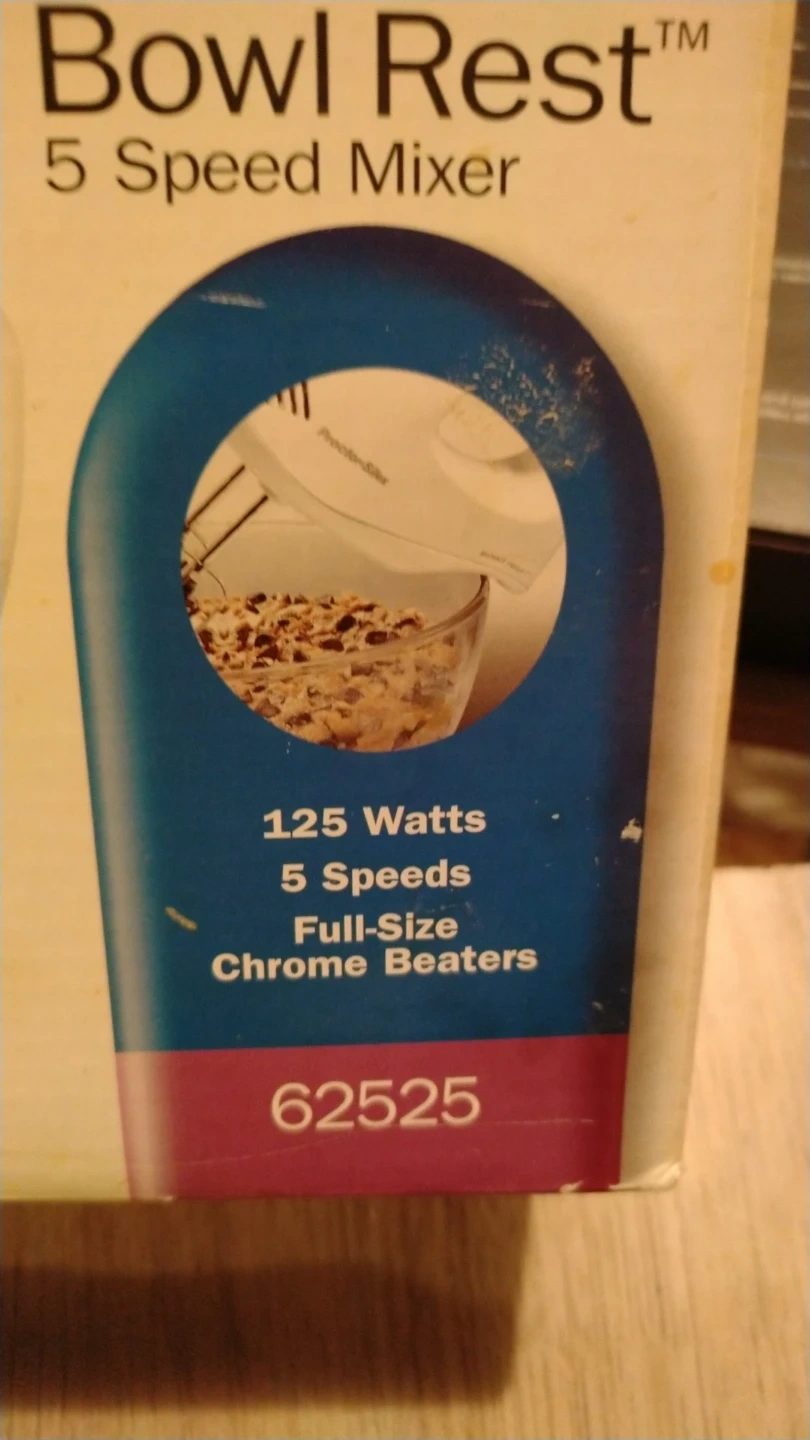 20Selling a Proctor Silex Bowl Rest 5-Speed Mixer! This mixer features: - 125 Watts of power - 5 Speeds - Full-Size Chrome Beaters - Bowl Rest feature to eliminate messy drips