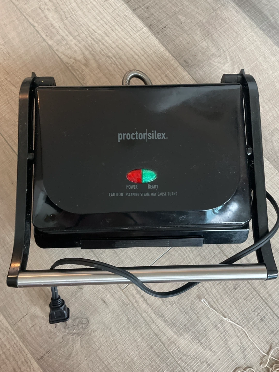 87Selling a Proctor Silex grill. The model number is 25440PS. It is black in colour. Please note that the drip tray is damaged as shown in the photos.