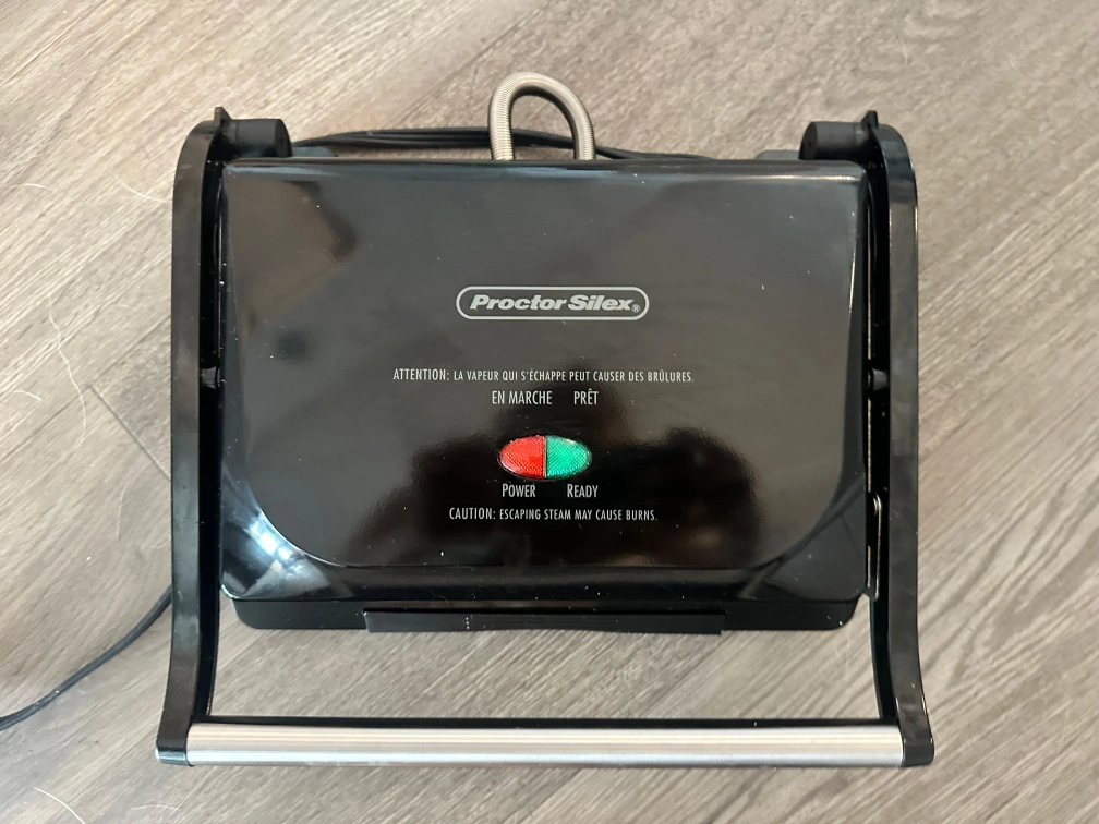 14Selling a Proctor Silex panini press in good condition. It's perfect for making quick and easy grilled sandwiches and more!