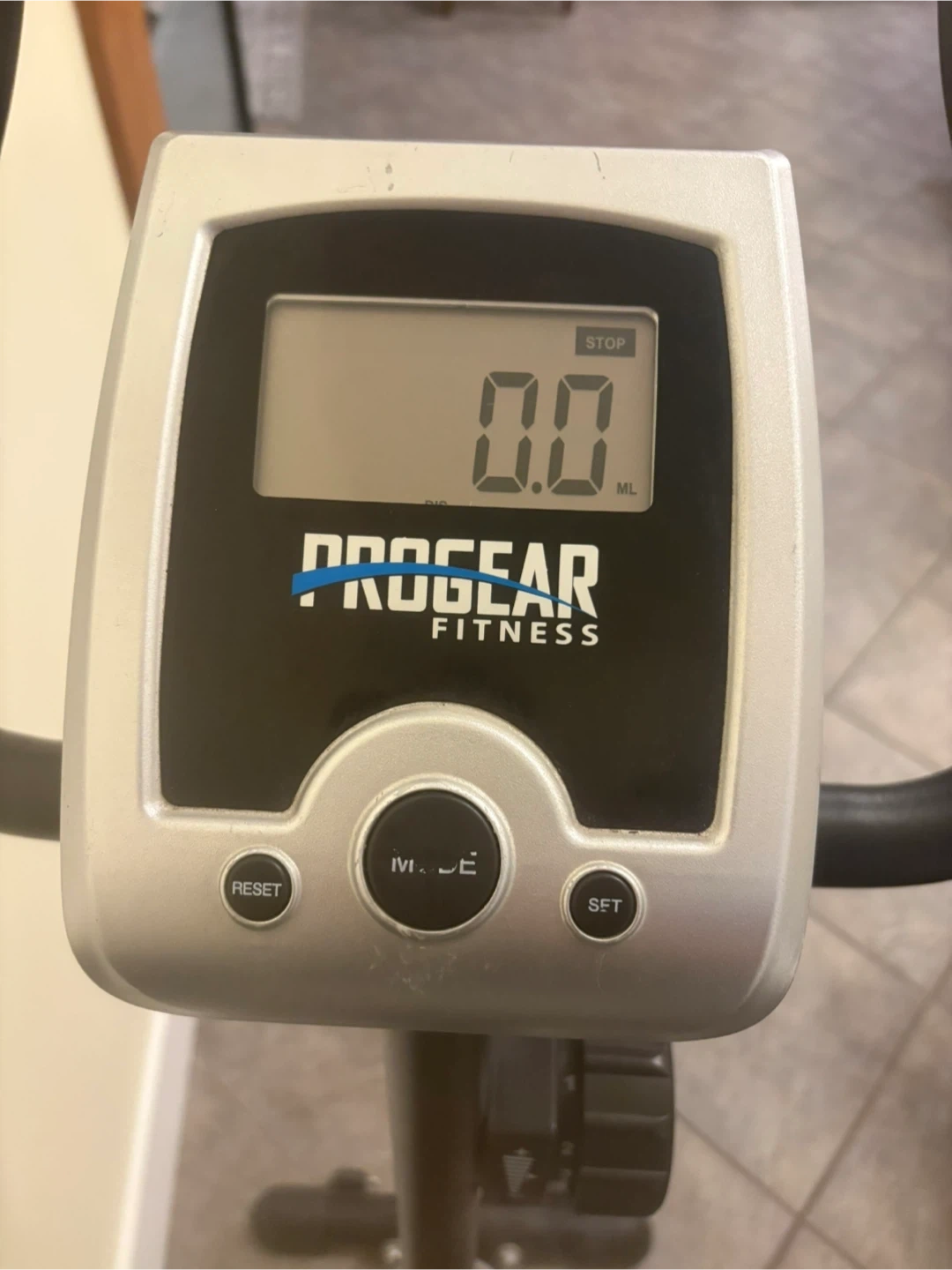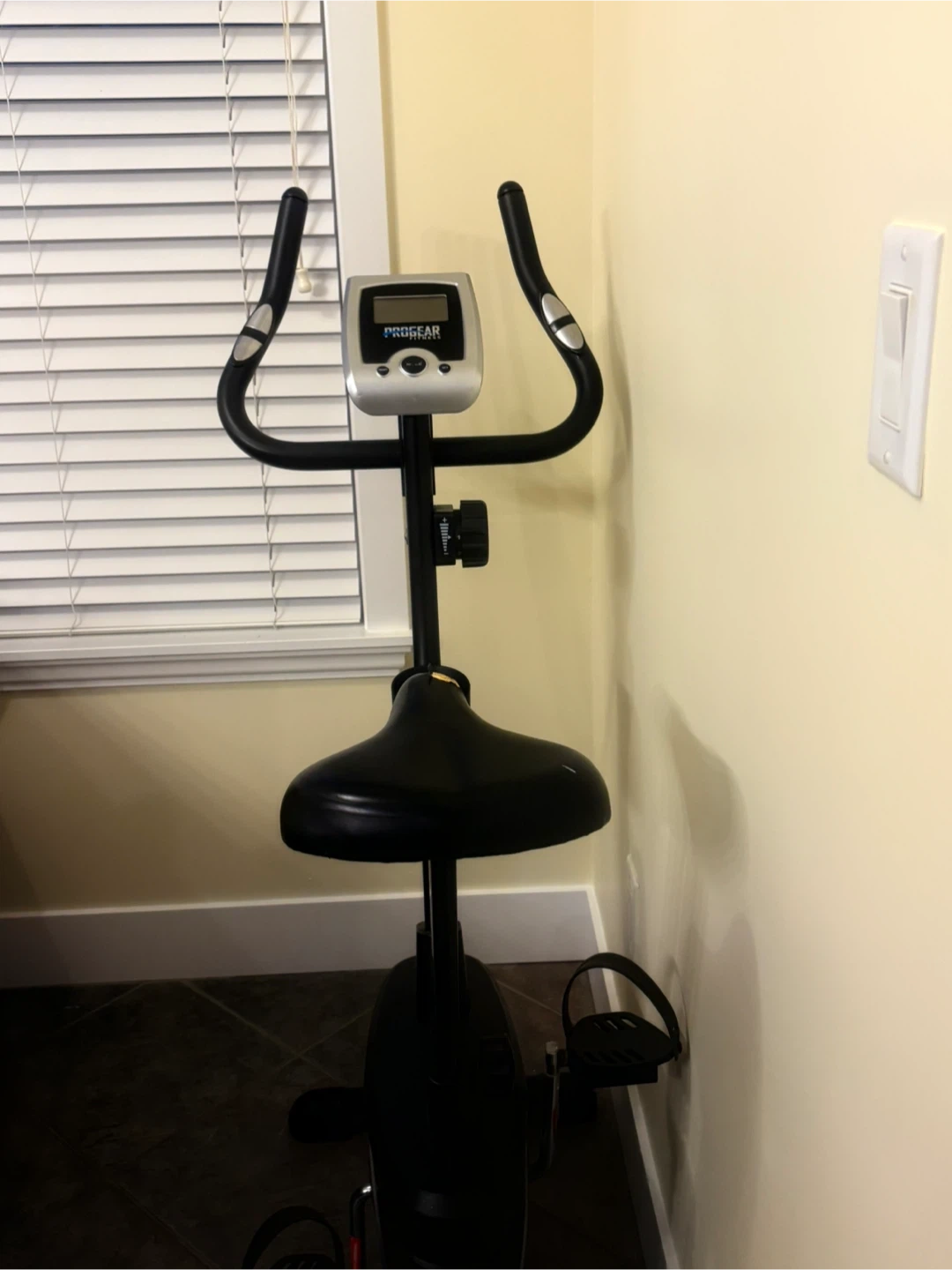 10Selling a Progear Fitness exercise bike! It's in used condition, but still works great. Perfect for getting a workout in at home. It has an adjustable seat and resistance settings. The display shows your speed and distance