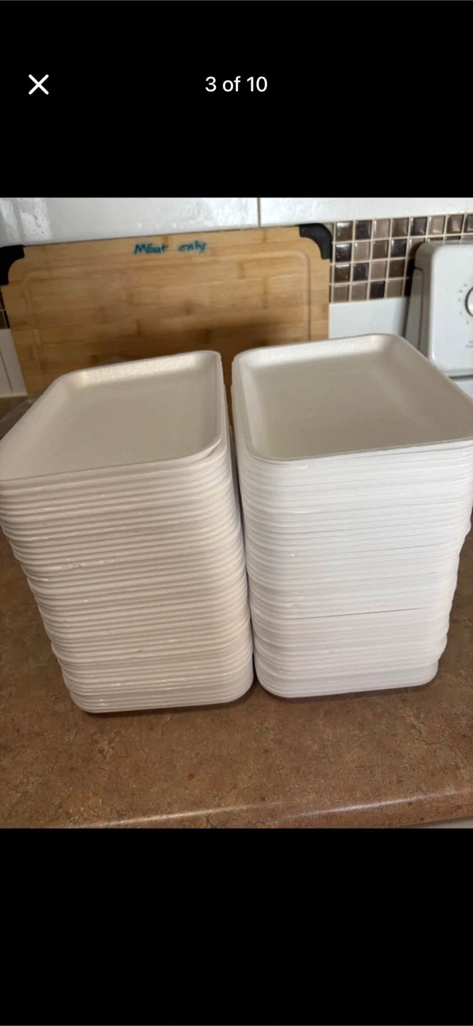 Bulk pack of white styrofoam food trays, perfect for parties or events. Around 75 appetizer plates great for serving snacks or meals.smoke free pet free home .. pick up 551 Emerson street .Coquitlam.Cash only. No delivery