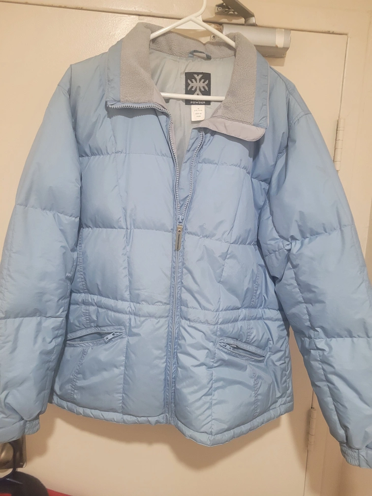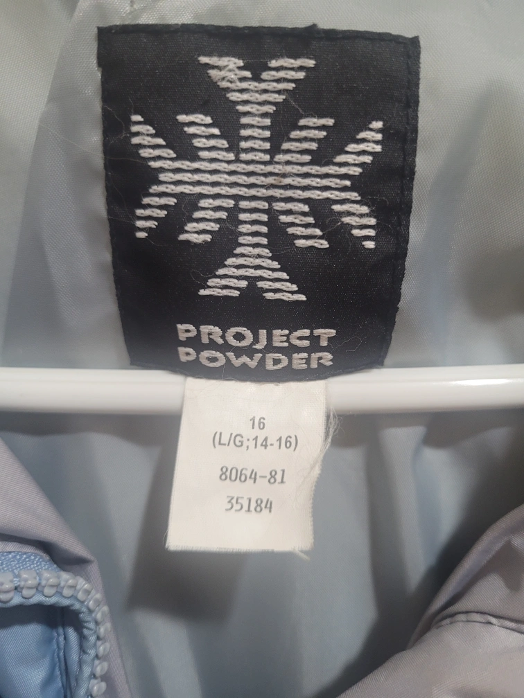 Selling a Project Powder winter puffer jacket in size 16 (L). It's a light blue colour and in great condition. Perfect for staying warm during the colder months!
