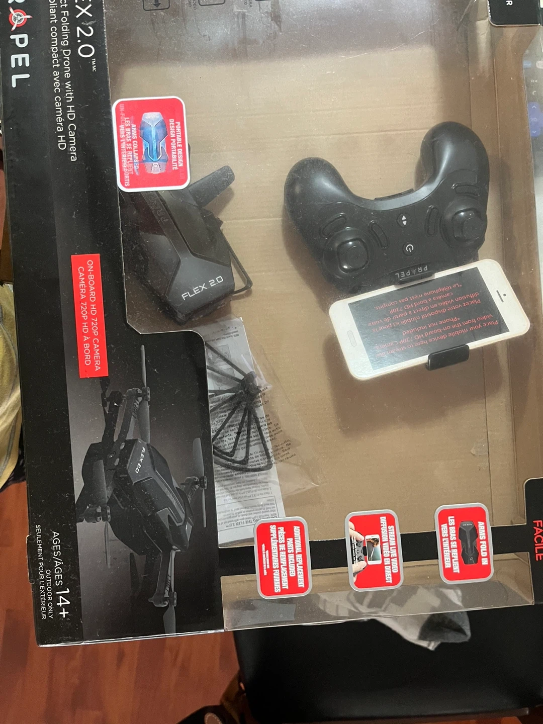 21Selling a Propel Flex 2.0 compact folding drone with an HD camera! It's in like-new condition and comes with the box and all original components. This drone features a portable design and arms that collapse for easy storage. It also has an onboard HD 720P camera for capturing great aerial footage. Perfect for beginners and experienced drone enthusiasts alike!