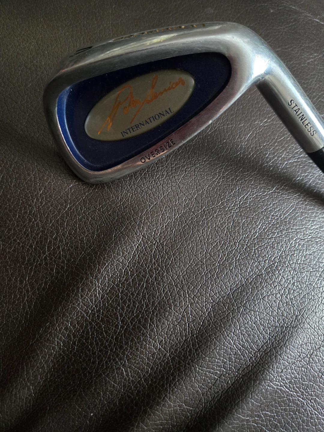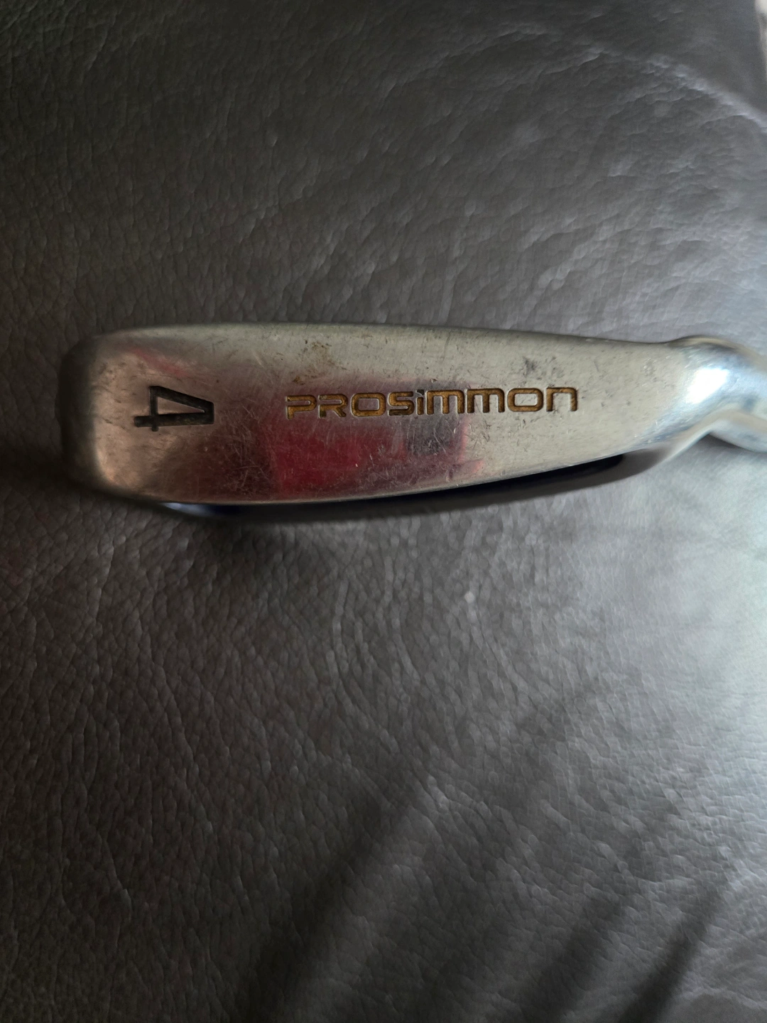 15Pre-owned Prosimmon #4 iron. Oversize head. Stainless steel. Shows some wear.