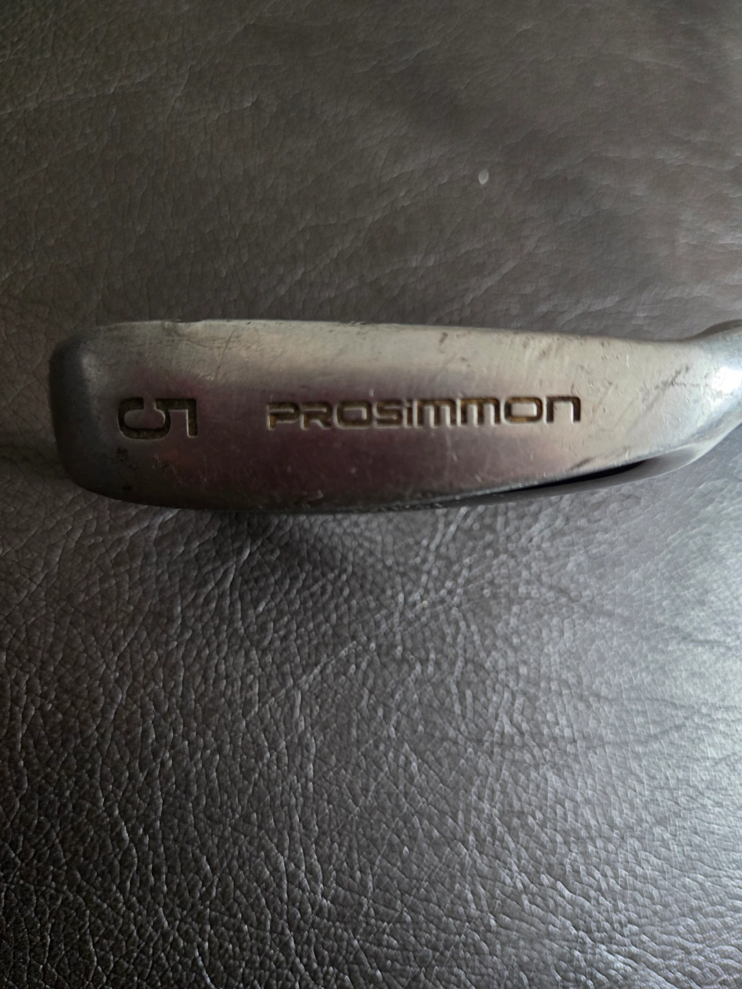 15Pre-owned Prosimmon Peter Senior International golf club. Oversize head. Stainless steel. Number 5 iron. Shows some wear.
