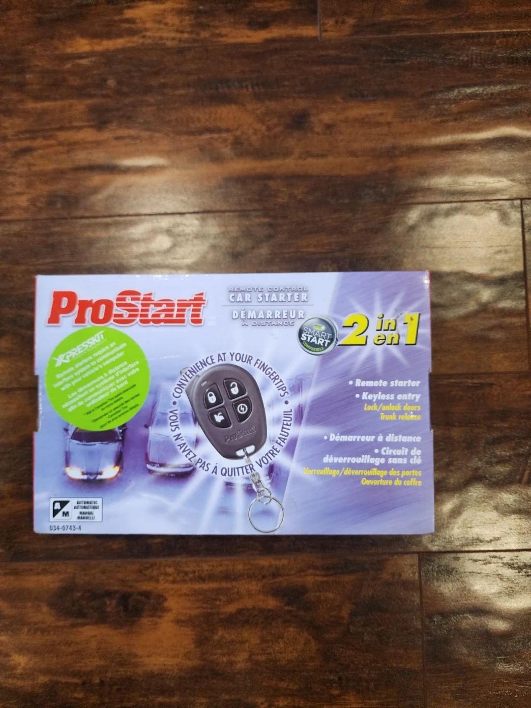 65Selling a brand new ProStart Xpresskit remote car starter. It's still in the original box and includes all the components and instructions. Key features: - Remote starter - Keyless entry - Lock/unlock doors - Trunk release Get ready for winter with this convenient 2-in-1 system!