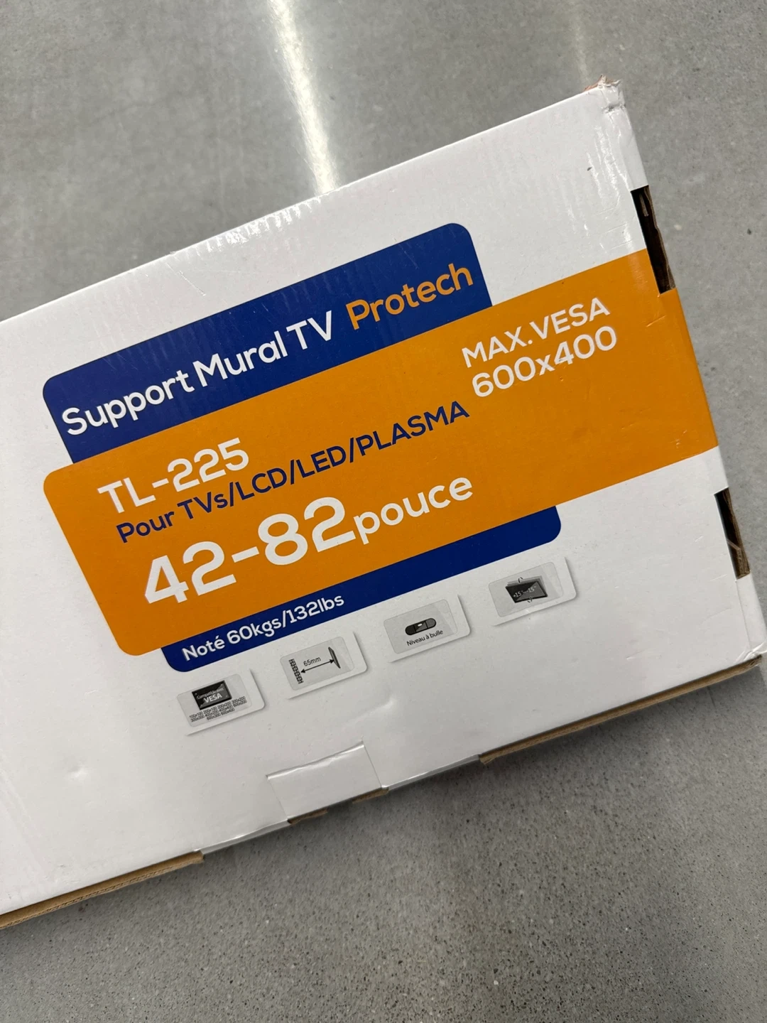 Selling a Protech TV wall mount, model TL-225. It's designed to support TVs, LCD, LED, and Plasma screens ranging from 42 to 82 inches. The mount can handle up to 60kg (132lbs) and supports a maximum VESA of 600x400. Perfect for securely mounting your TV!